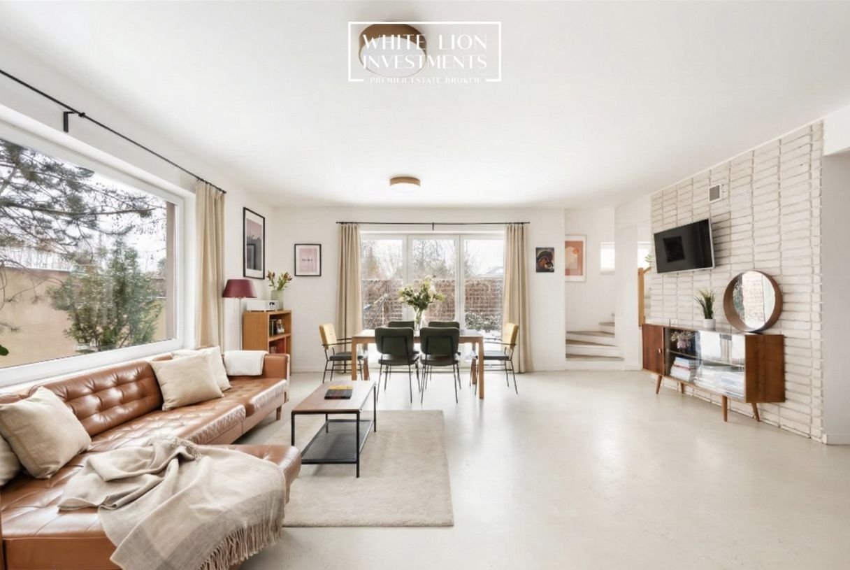 W sercu willowej, kameralnej Radości oferuję na sprzedaż przestronny i klimatyczny dom w zabudowie bliźniaczej o powierzchni użytkowej 195 m², położony na prostokątnej działce o powierzchni 309 m².
