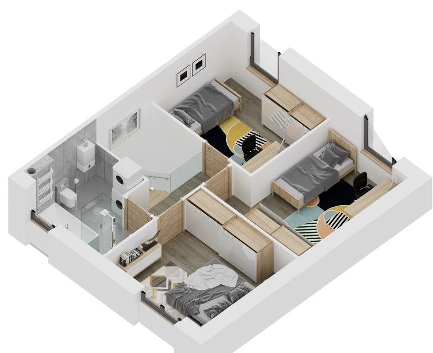 – 3 sypialnie i dużą łazienkę na piętrze.