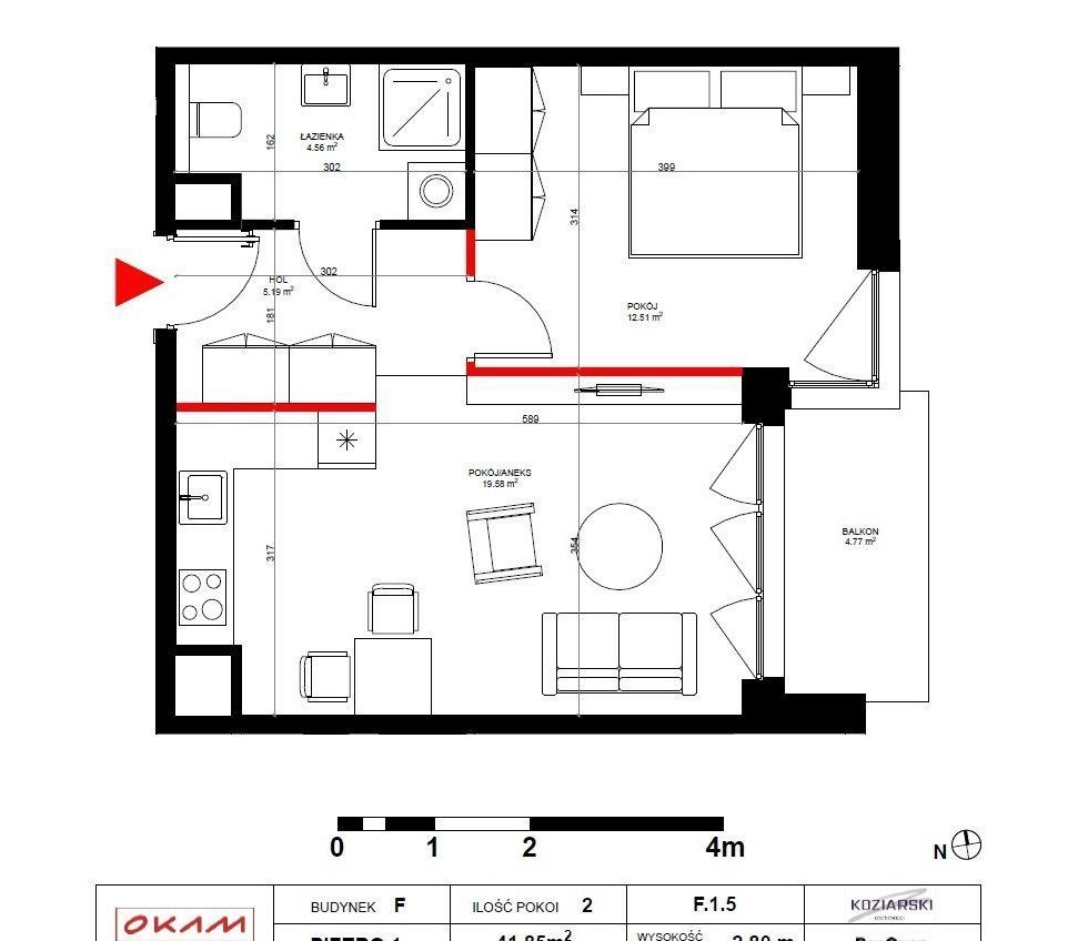 Biuro nieruchomości To House oferuje na sprzedaż 2 pokojowe mieszkanie o powierzchni 41,85 m² z balkonem 4,77 m2.