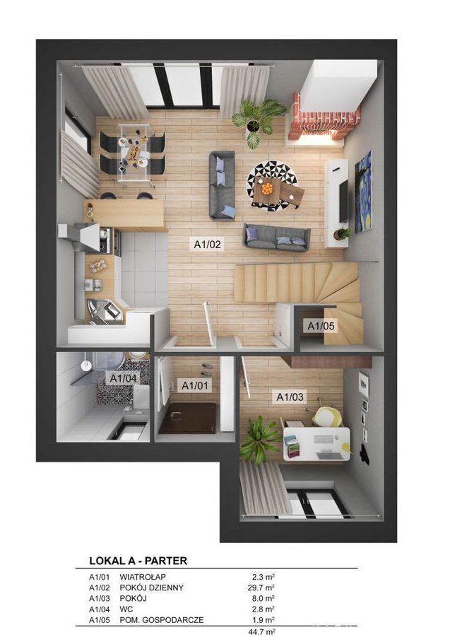 Na parterze (44,7 m2):