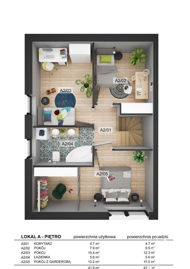 Na piętrze (44,8 m2):
