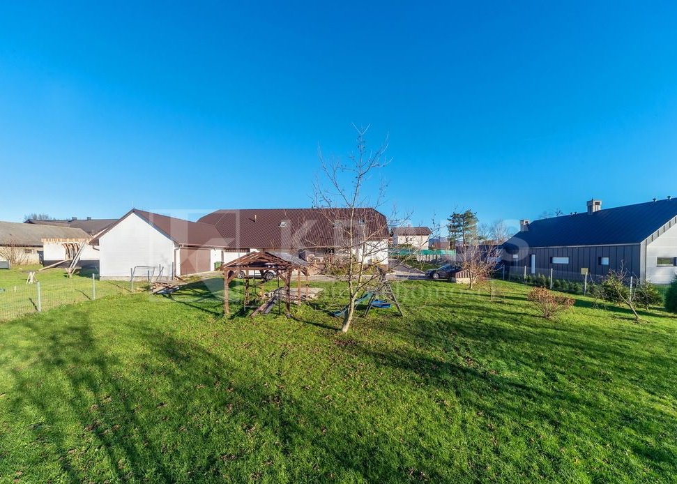 Część budowlana otacza dom, tworząc przestrzeń na ogród, strefę relaksu lub mini agroturystykę.