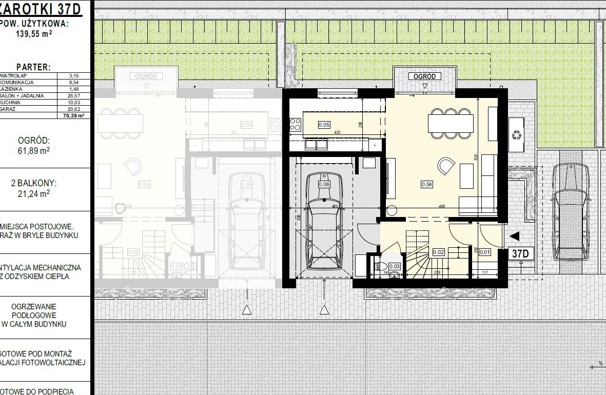 Na poziomie parteru znajdują się następujące pomieszczenia: