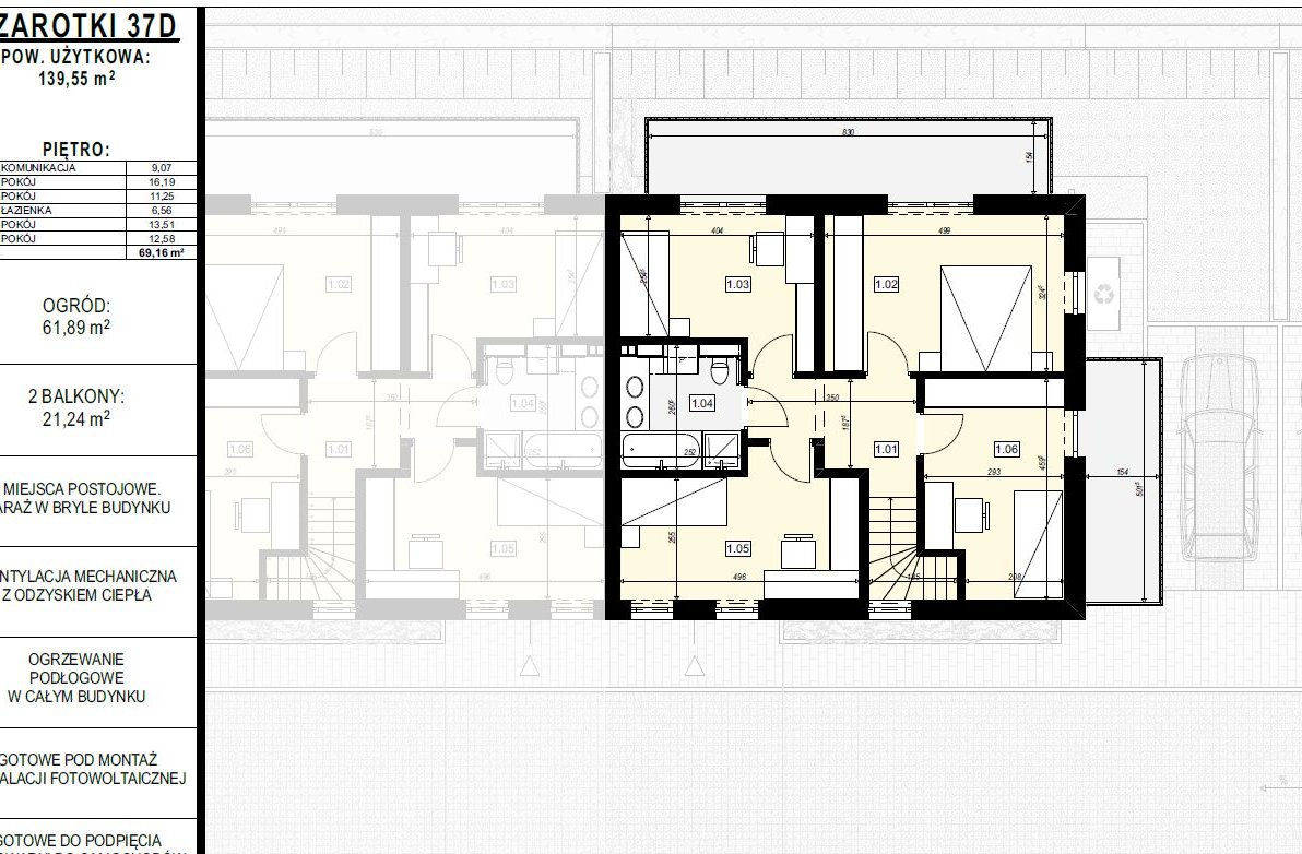 Rozkład pomieszczeń w budynku jest przejrzysty i funkcjonalny. Standard wykończenia i wyposażenia budynku na poziomie deweloperskim do indywidualnego wykończenia i adaptacji wnętrz.