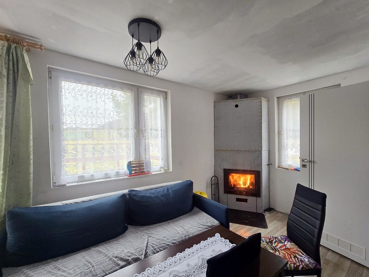 Dom ogrzewany jest kominkiem z nawiewami.