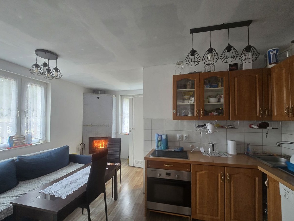 - salon z wyjściem na taras i z aneksem kuchennym