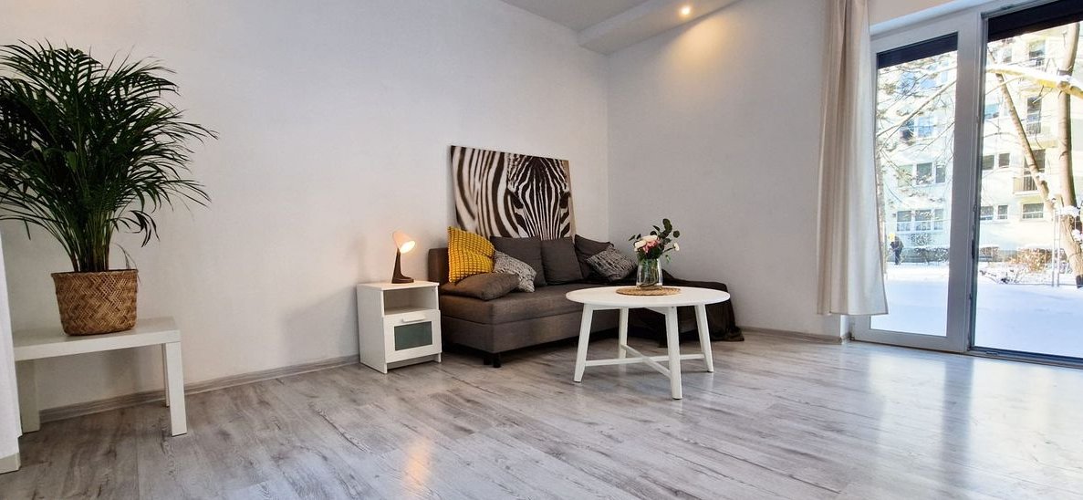 I am offering a unique apartment for sale directly from the owner. Located on the ground floor of a well-maintained tenement house from 1930 on Obopólna Street, this property is a perfect choice for a single person, a couple, or as a solid investment for rent.