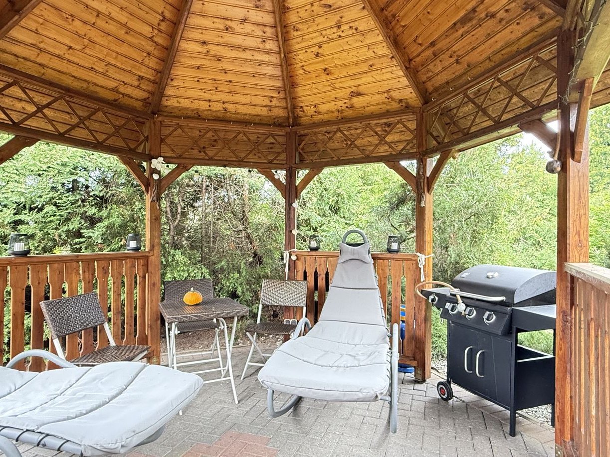 Ogród wokół domu jest w pełni zaaranzowany i wykorzytsny. Oprócz "chatki biesiadnej" dodatkowe miejsca do odpoczynku, ogród warzywny i drzewa owocowe.