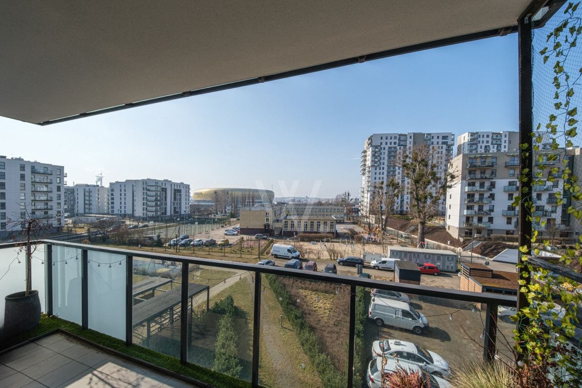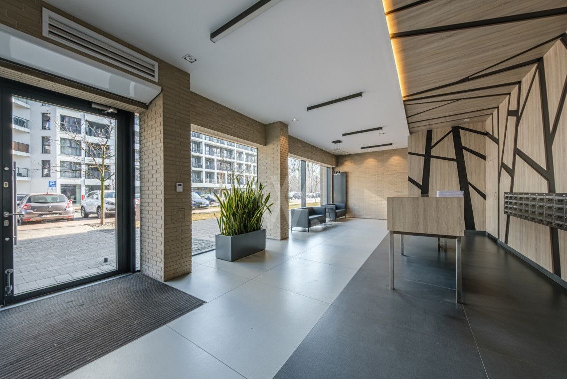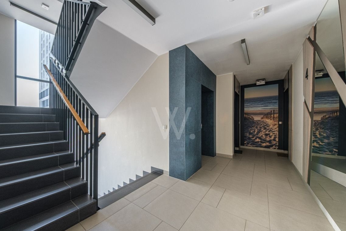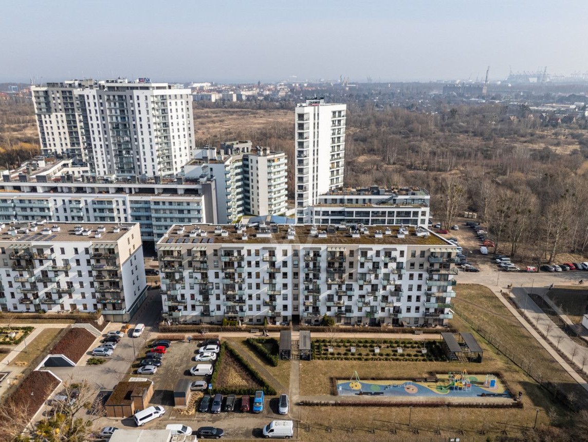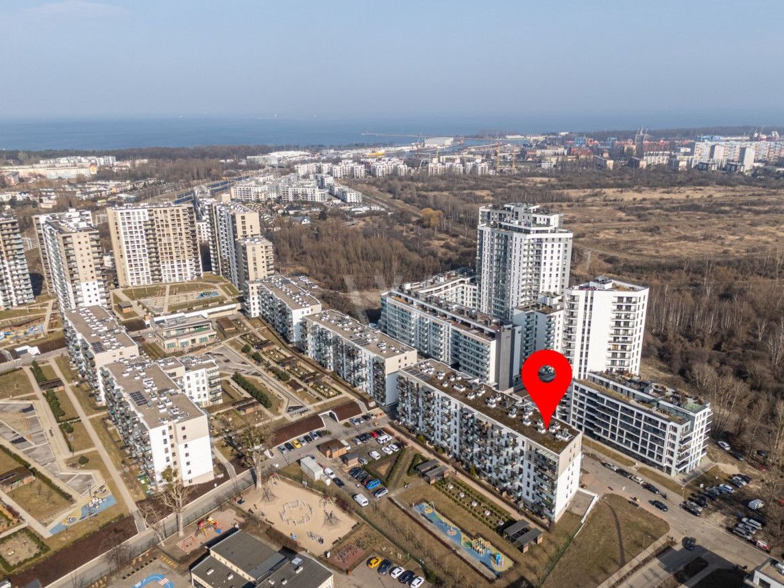 Mieszkanie usytuowane jest na 3. piętrze w 6-piętrowym budynku z windą z 2018 roku, inwestycji dewelopera Robyg, z dostępem do nowoczesnych udogodnień na osiedlu i w budynku. Kompleks monitorowany jest przez całodobowy system ochrony, a na terenie osiedla znajduje się lobby z portierem, liczne zewnętrzne miejsca parkingowe, stojaki na rowery (zarówno wewnętrzne, jak i zewnętrzne).