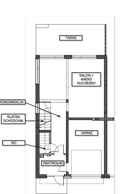 Dom wyróżnia się funkcjonalnym układem bez skosów na piętrze, co zapewnia pełną wysokość i wygodę użytkowania. Dodatkowo oferuje możliwość adaptacji przestronnego poddasza, co daje nawet do 6 pokoi!