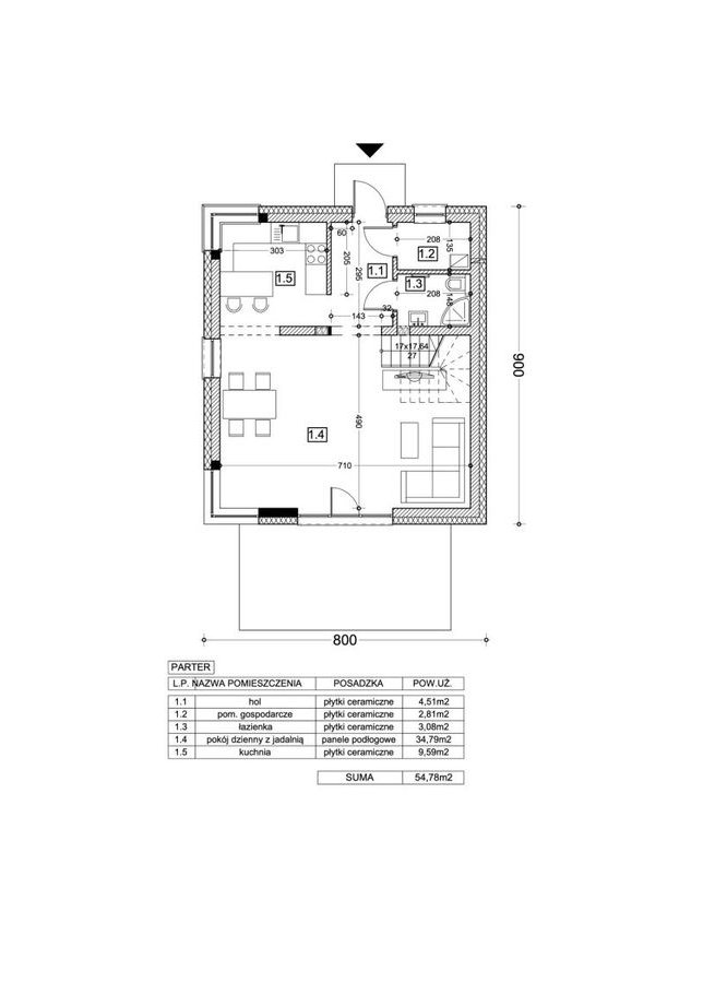 •budynek wykonany technologią tradycyjną: ściany nośne