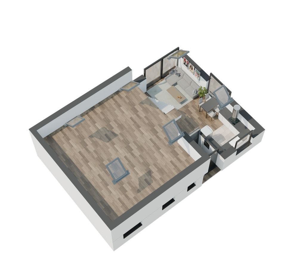 • Salon + kuchnia + komunikacja – 32,82 m²