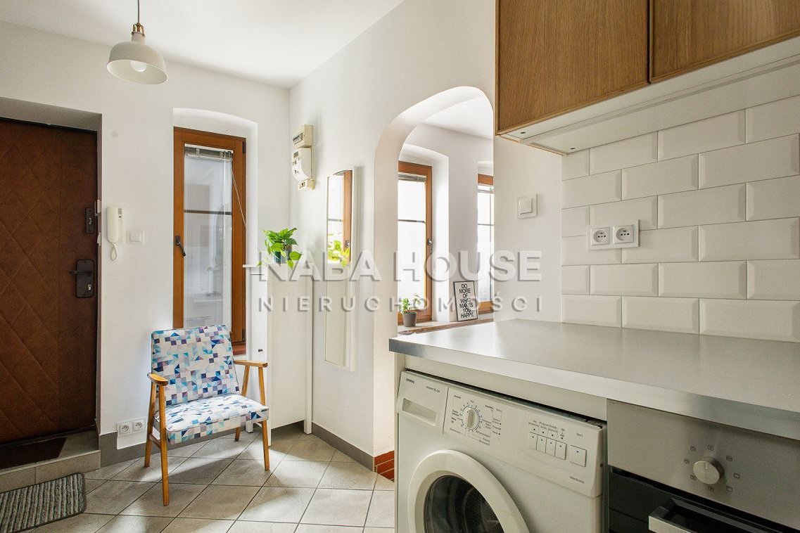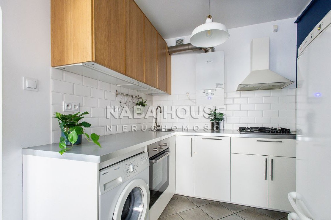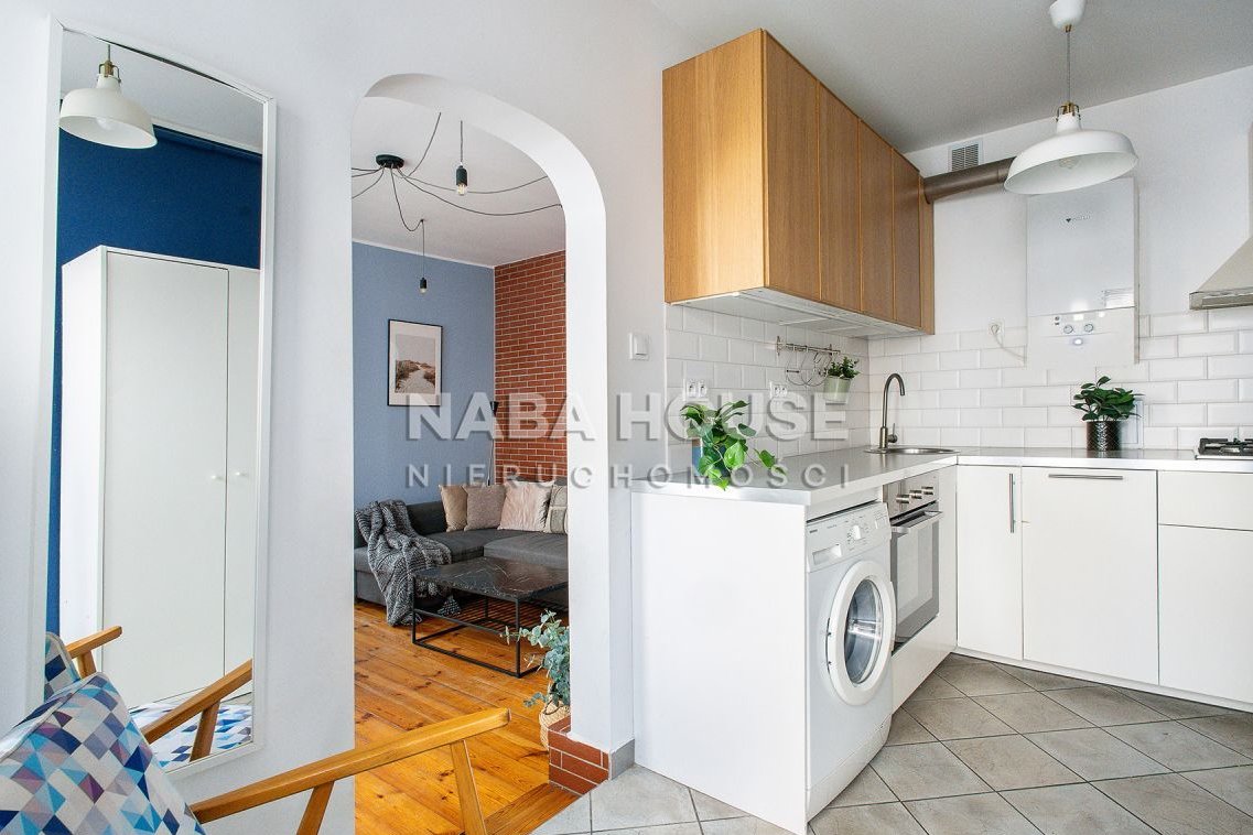 Wnętrze przytulne, podzielone na funkcjonalne strefy. Osobna kuchnia wyposażona w lodówkę, piekarnik, płytę elektryczną, wyciąg, zmywarkę. Strefa dzienna zaprasza do relaksu na kanapie lub obejrzenia ulubionego serialu. Przy niewielkim stoliku jest miejsce do wypicia kawy z przyjaciółką bądź wspólnej nauki do egzaminu, jeżeli lokatorami okażą się studenci.