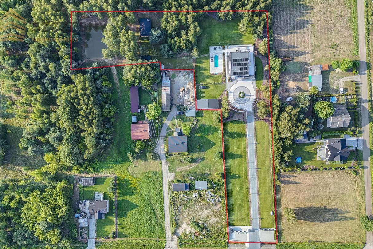 • Działka: 8658 m² – ogrodzona, zagospodarowana, z licznymi nasadzeniami