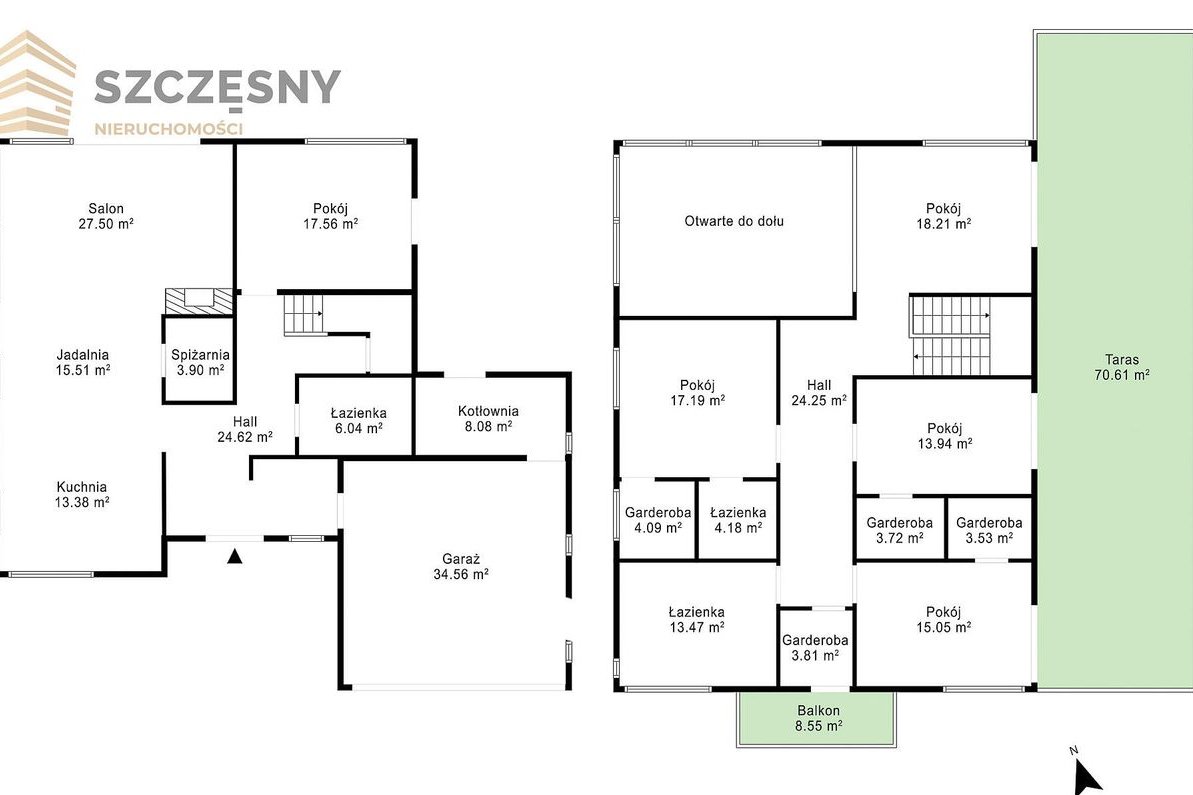 • Tarasy: 72,78 m² i 8,11 m²