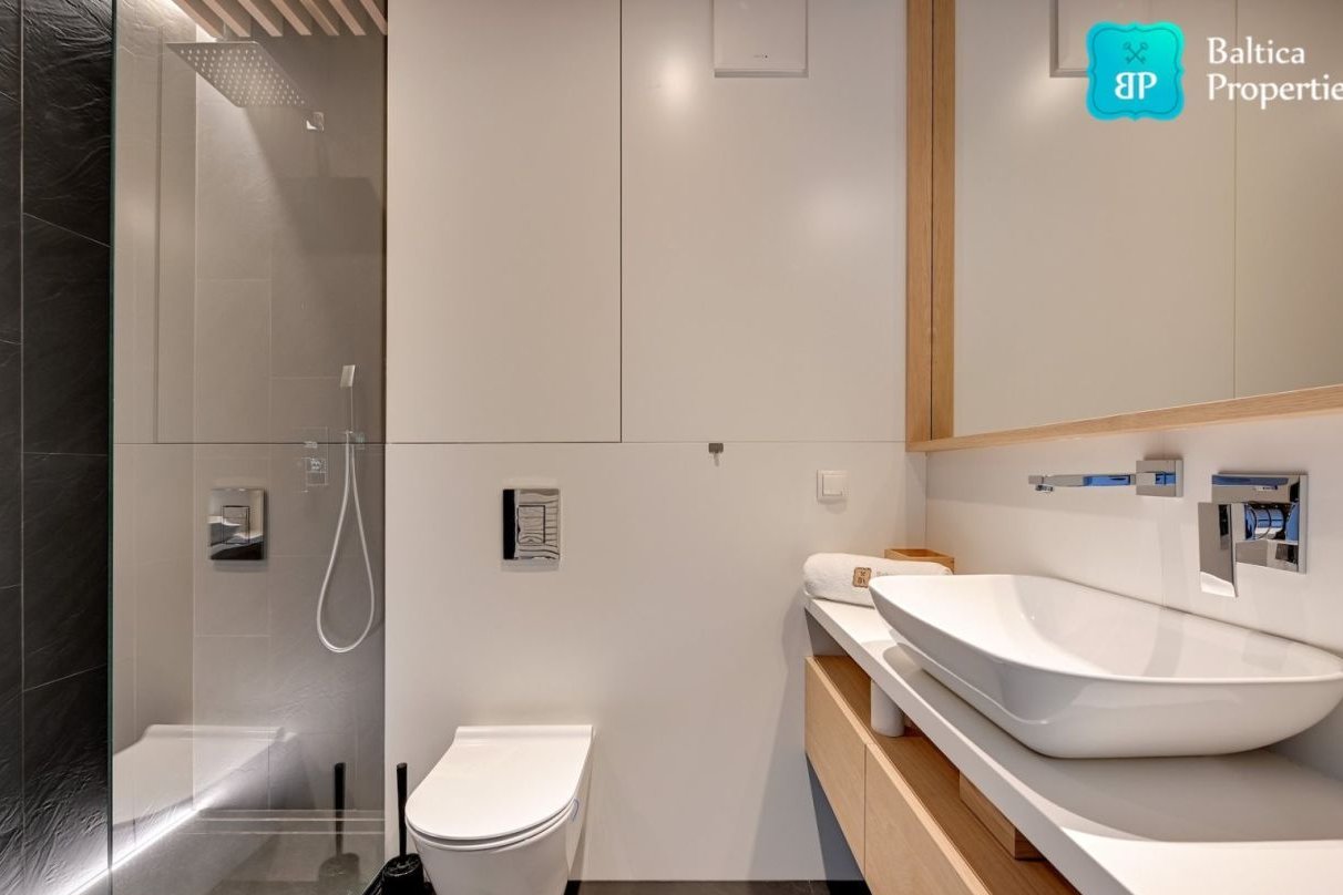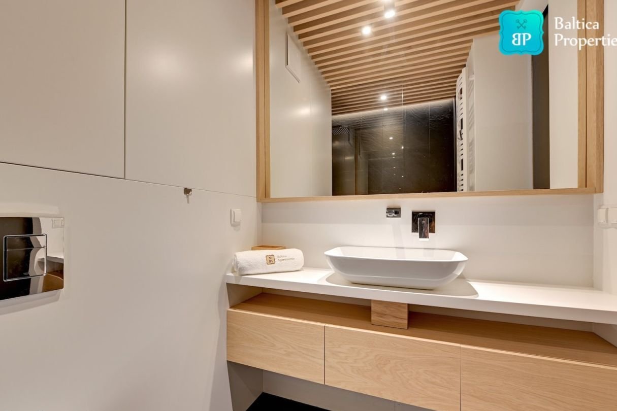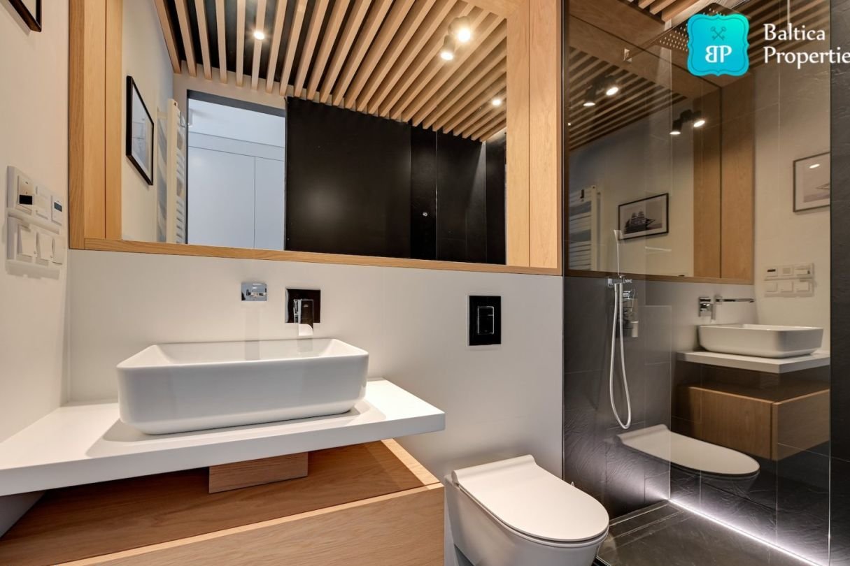 Cały apartament został wykończony ze smakiem z bardzo wysokiej jakości materiałów pod okiem architekta wnętrz.