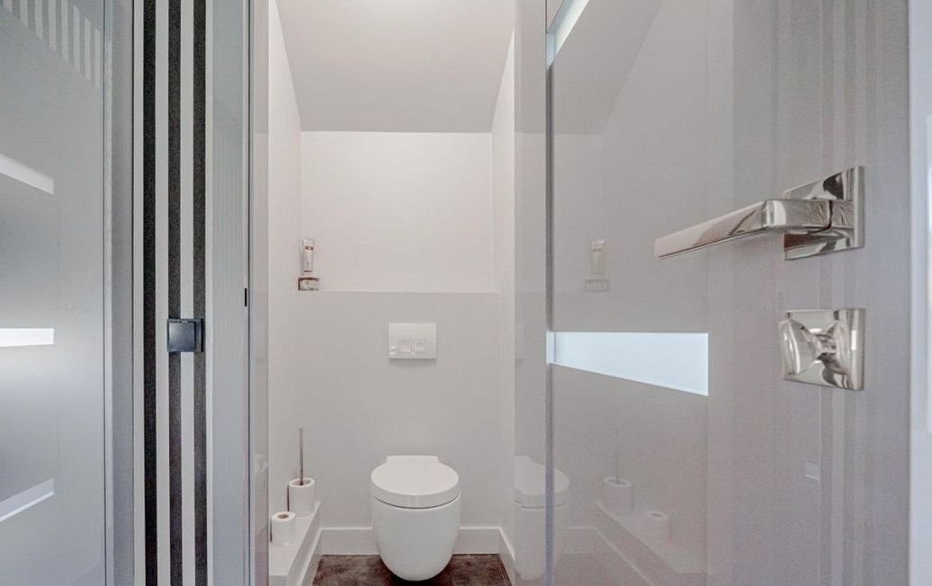 Ściany wykończone alcantarą, stolarka drzwiowa lakierowana, klamki z systemem samodomyku