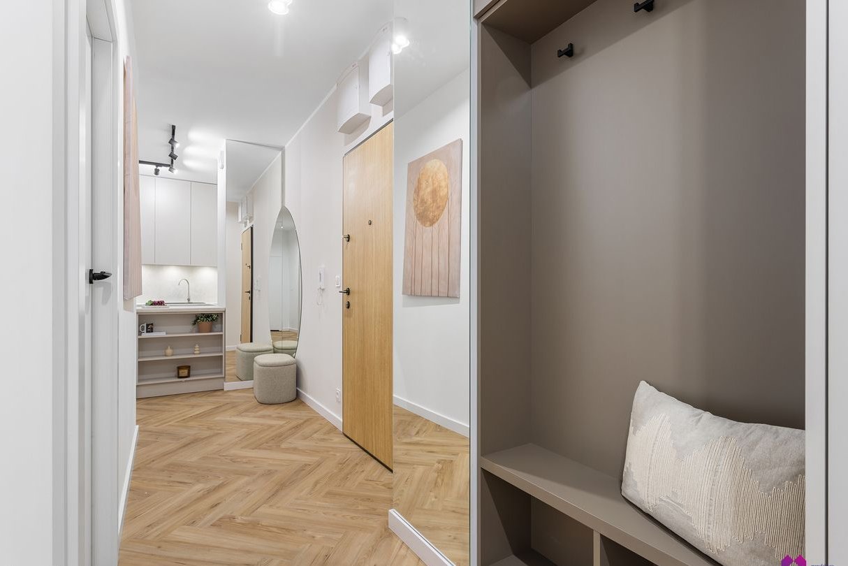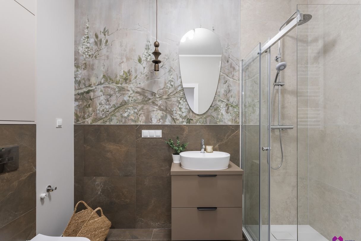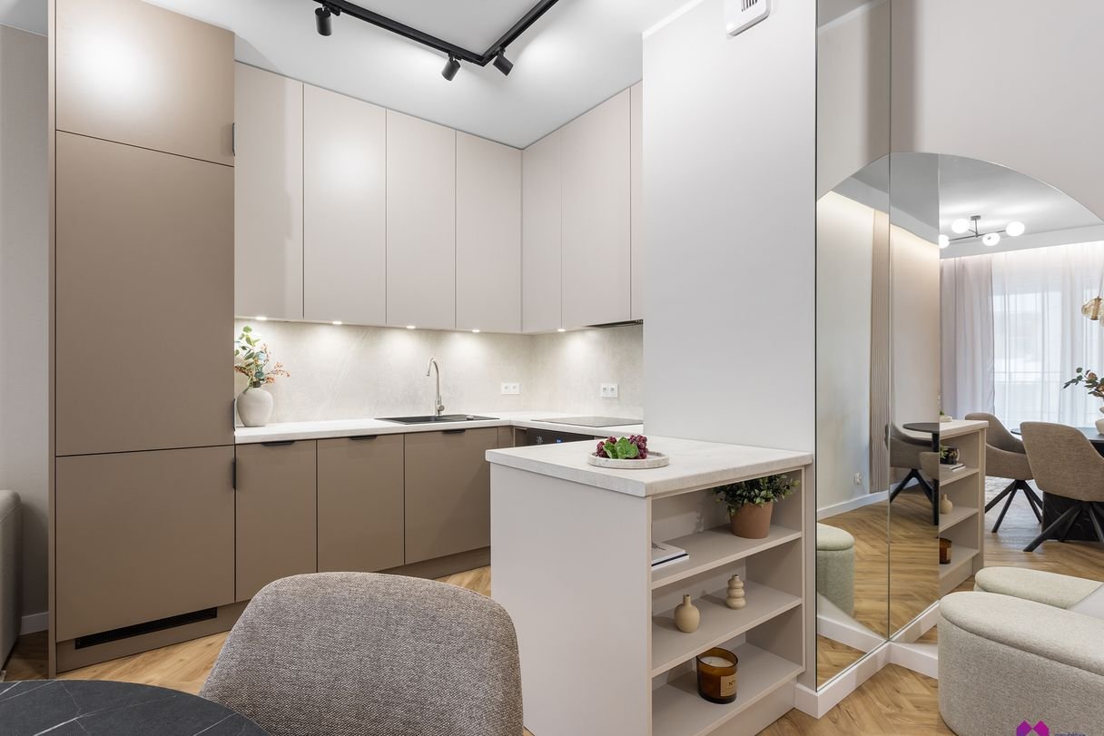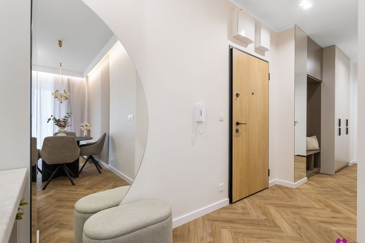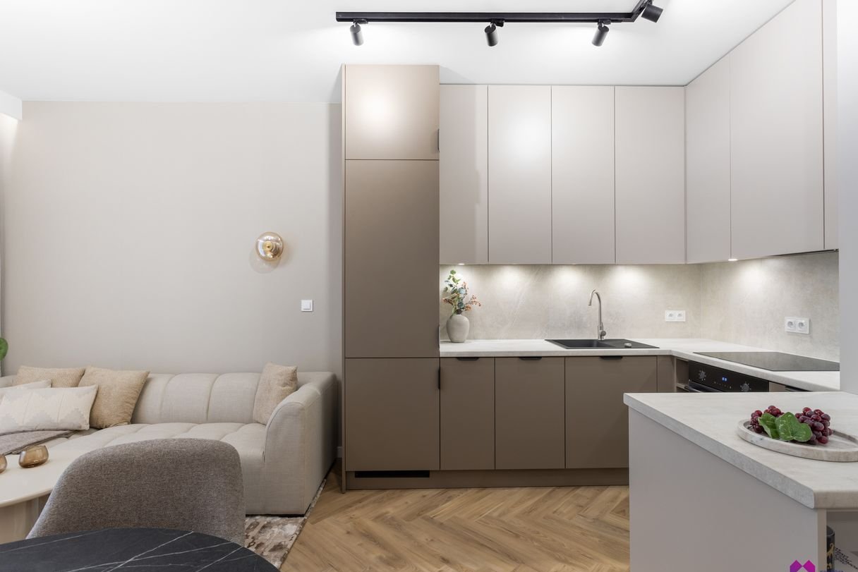 Mieszkanie wykończone pod klucz w podwyższonym standardzie w stylu nowoczesnym według najnowszych trendów. We wnętrzu panują odcienie beżu, drewna, brązu oraz grafitu co sprawia, że mieszkanie jest niezwykle eleganckie i równie przytulne.