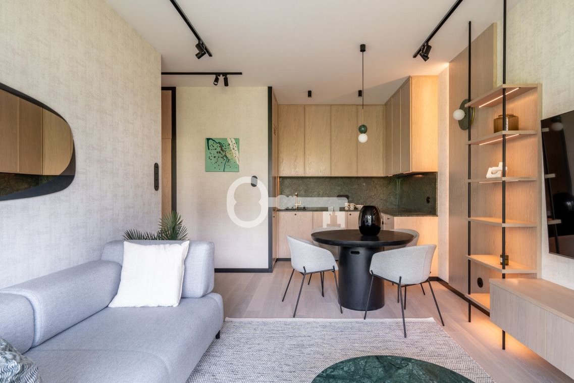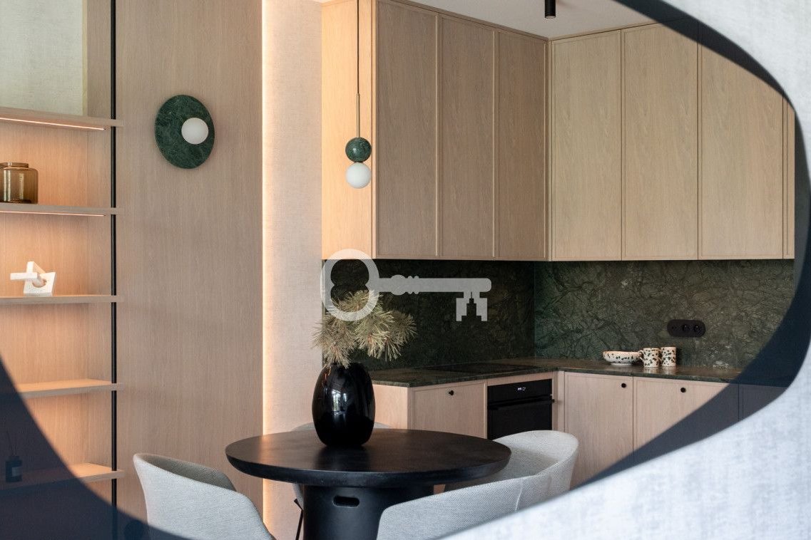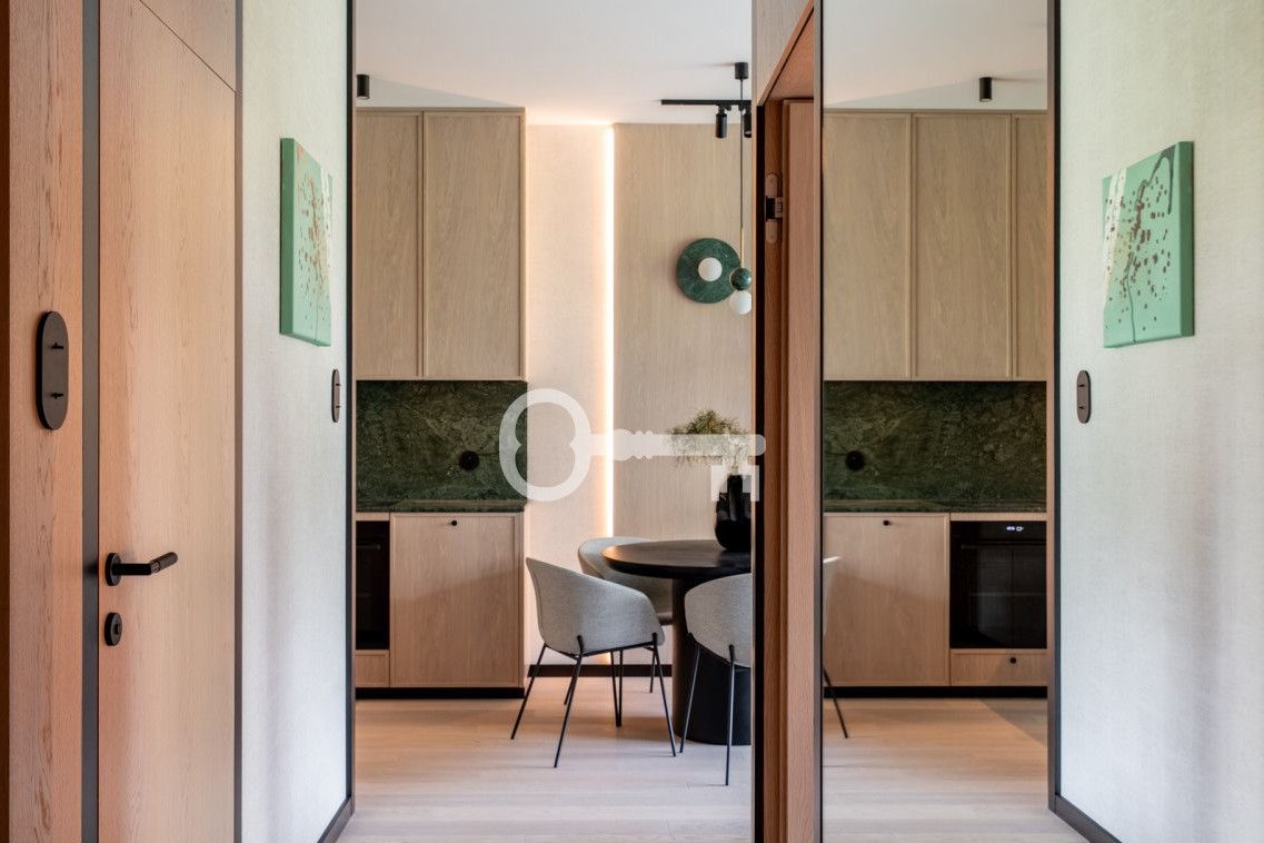 This apartment is a place for those who refuse to compromise and seek beauty, quality, and functionality in harmony with the surroundings. Upon entering this space, we notice delicate and refined green details, which are a nod to the surrounding Kolibkowski Park and the lush greenery of this intimate neighborhood.