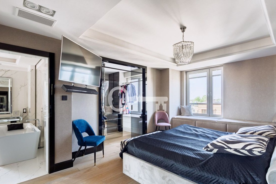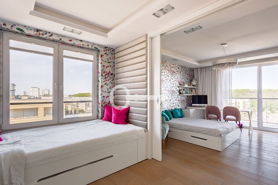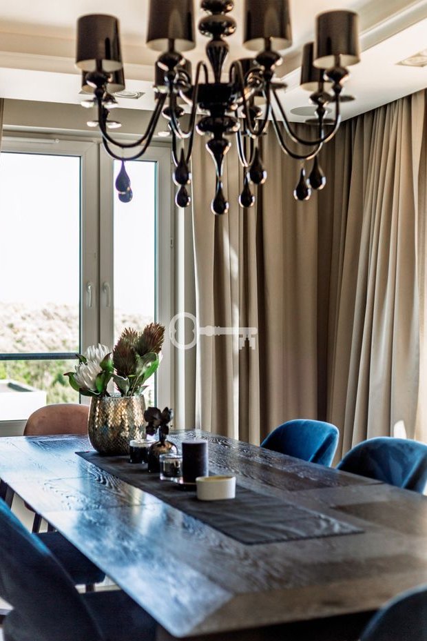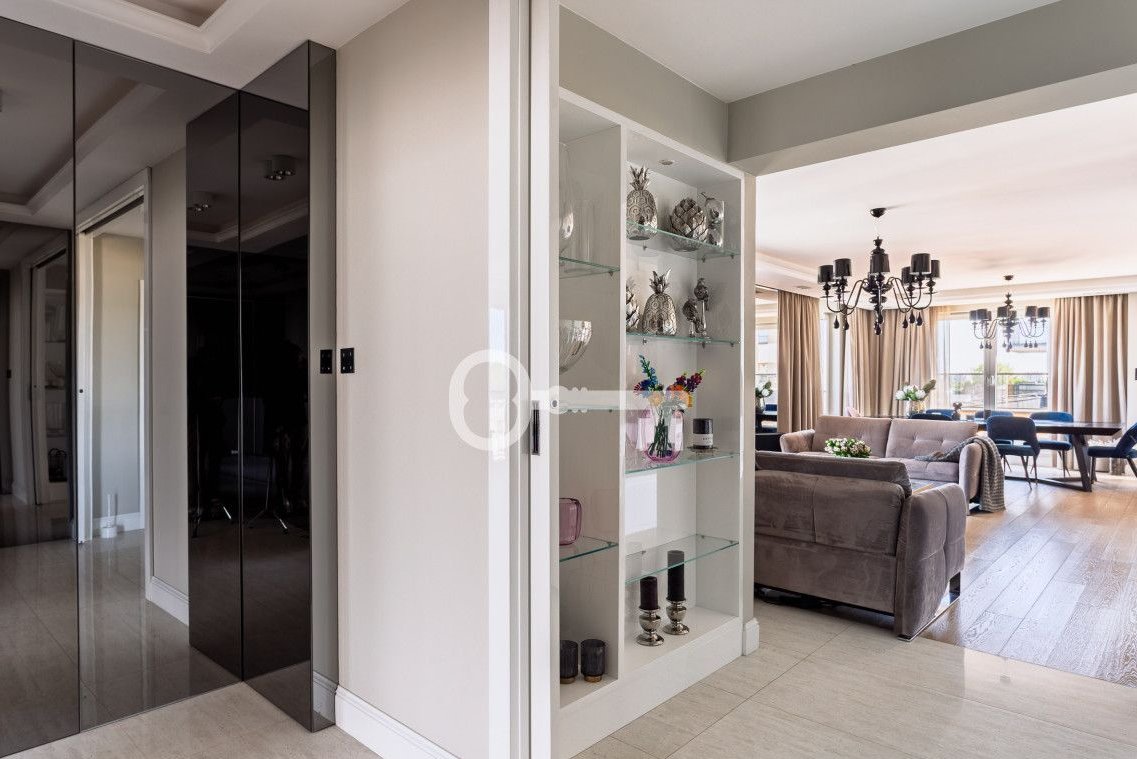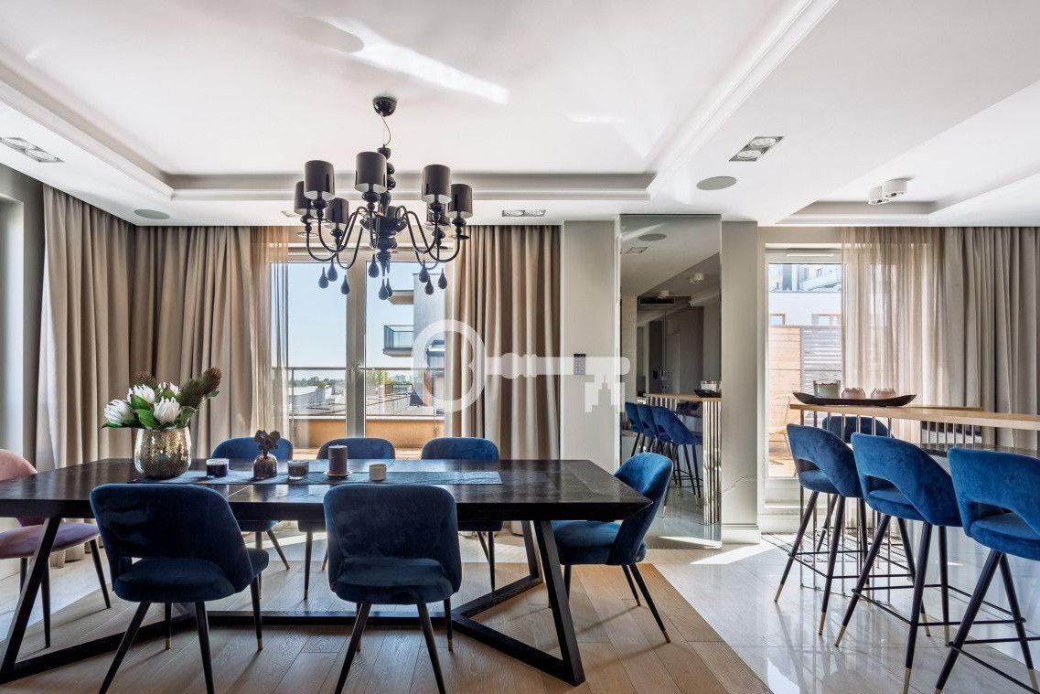 Ekskluzywny apartament, wykończony z użyciem najwyższej jakości materiałów, harmonijnie łączący komfort z luksusem. Mieszkanie oferuje trzy przestronne sypialnie, każda z indywidualną łazienką i garderobą, co zapewnia maksymalną prywatność. Salon z jadalnią to doskonała przestrzeń zarówno do wypoczynku, jak i spotkań towarzyskich. Kuchnia jest wyposażona w sprzęt najwyższej klasy, co czyni ją wyjątkowo funkcjonalną. Podłogi wykonano na zamówienie z naturalnego drewna, a zaawansowany system smart home marki Ampio oferuje pełną automatyzację i wygodę.