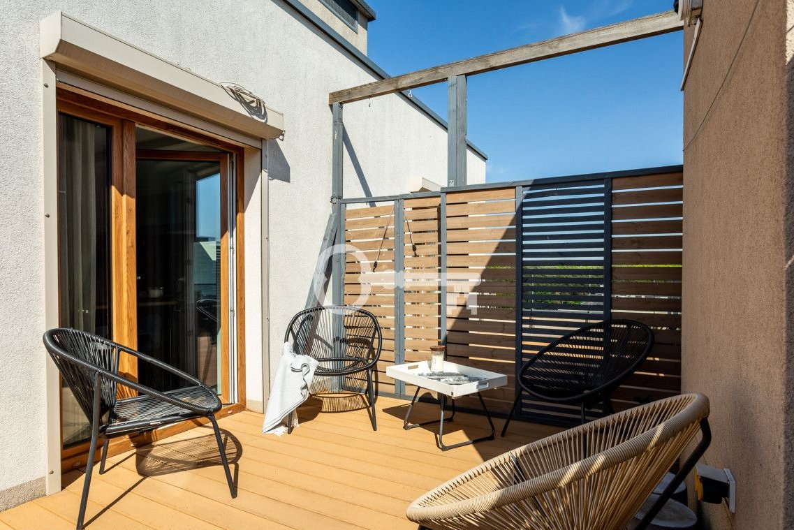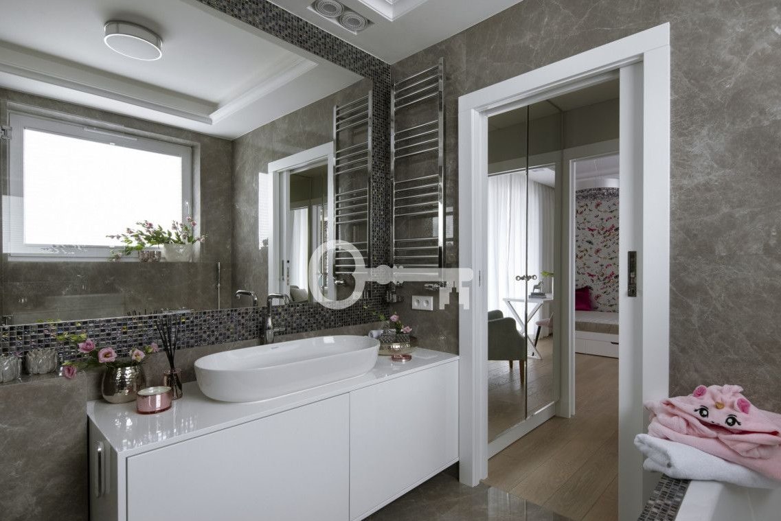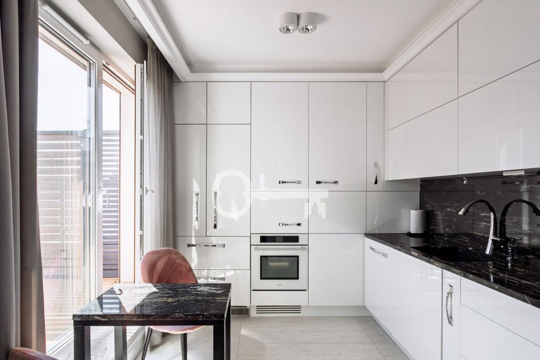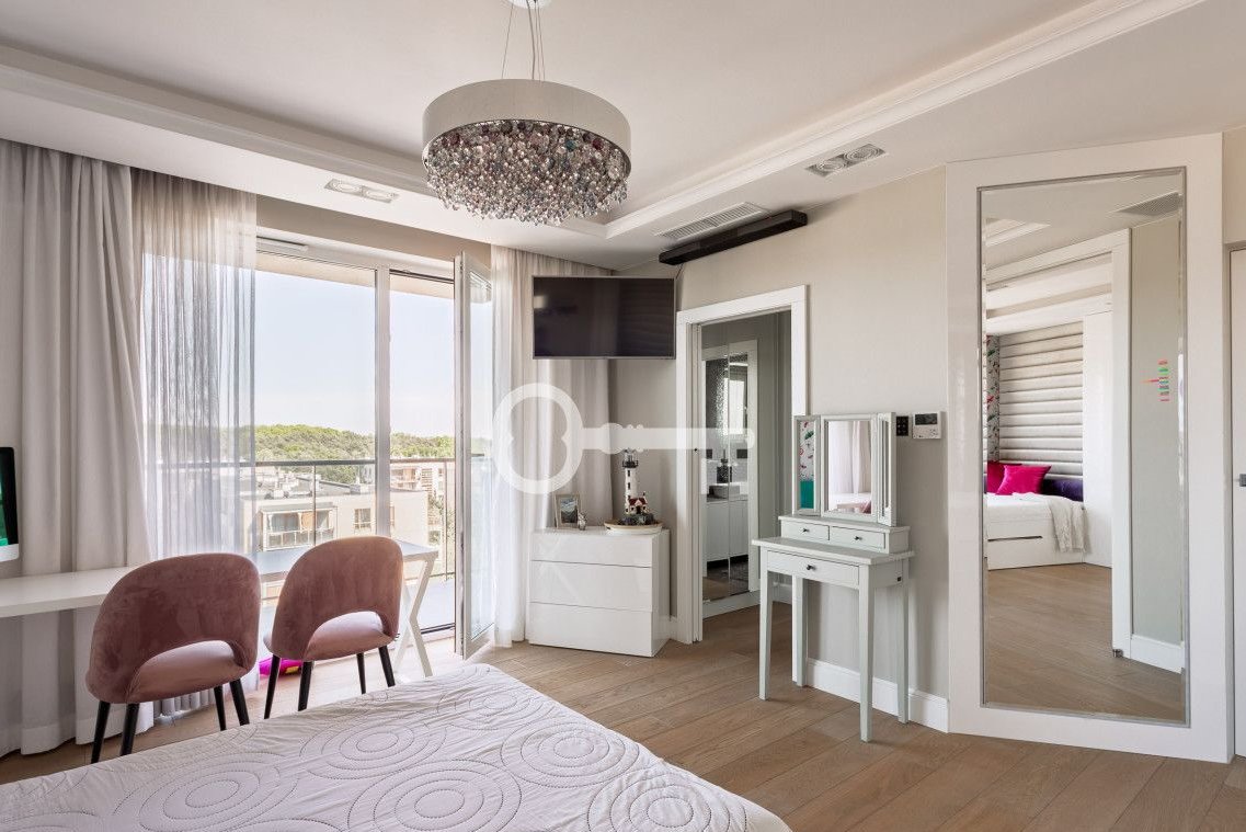 This exclusive apartment, finished with the highest quality materials, combines comfort and luxury. The apartment offers three spacious bedrooms, each with its own bathroom and walk-in closet, ensuring maximum privacy. The living room with a dining area is an ideal space for both relaxation and entertaining. The kitchen is equipped with top-of-the-line appliances, making it exceptionally functional. Custom-made natural wood flooring and the advanced Ampio smart home system provide full automation and convenience.