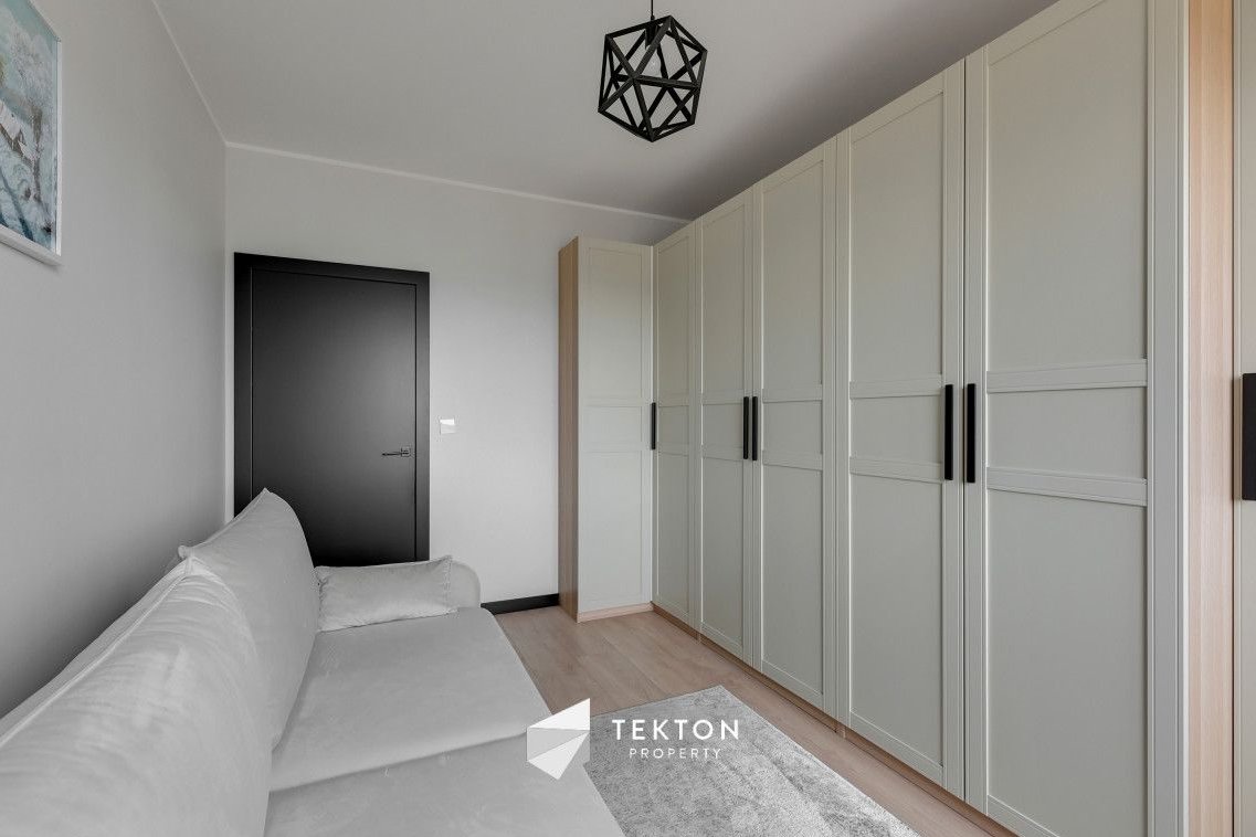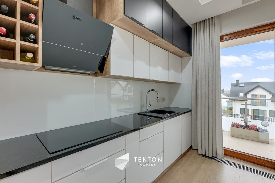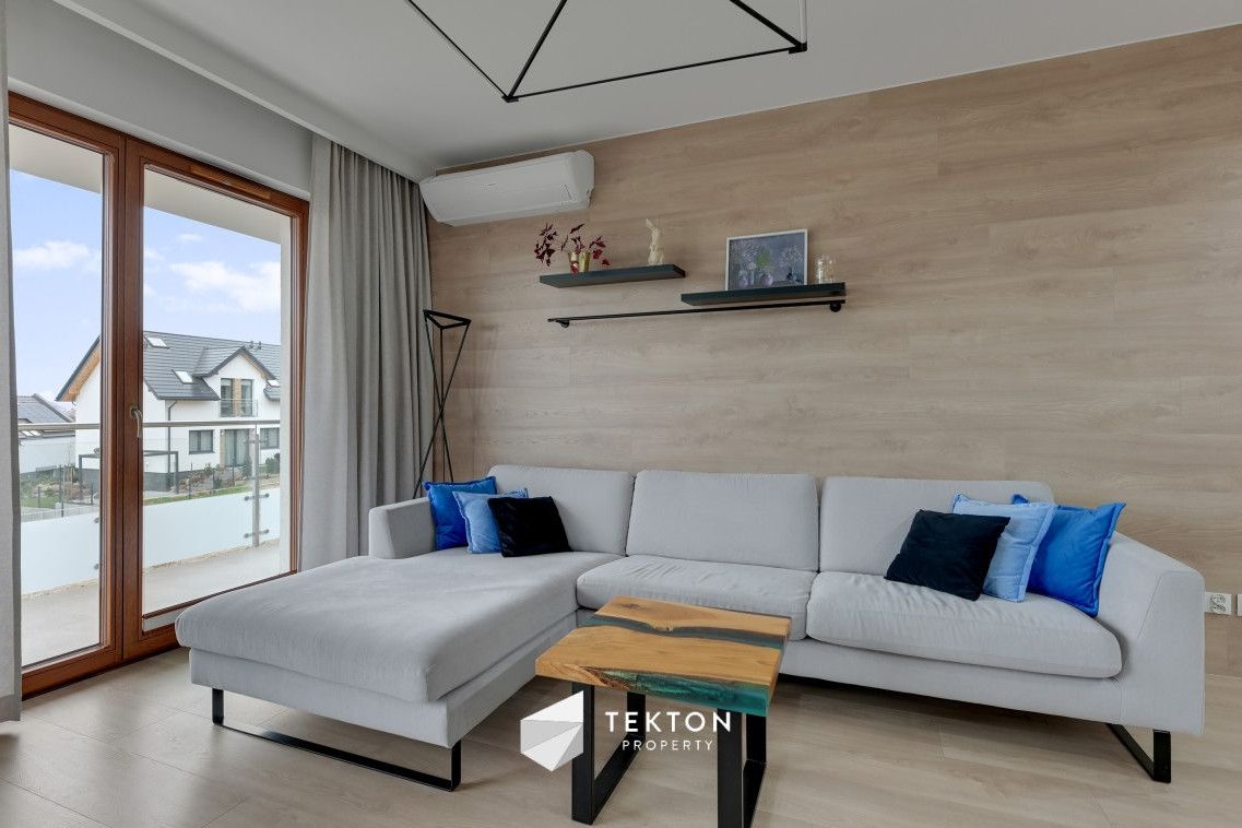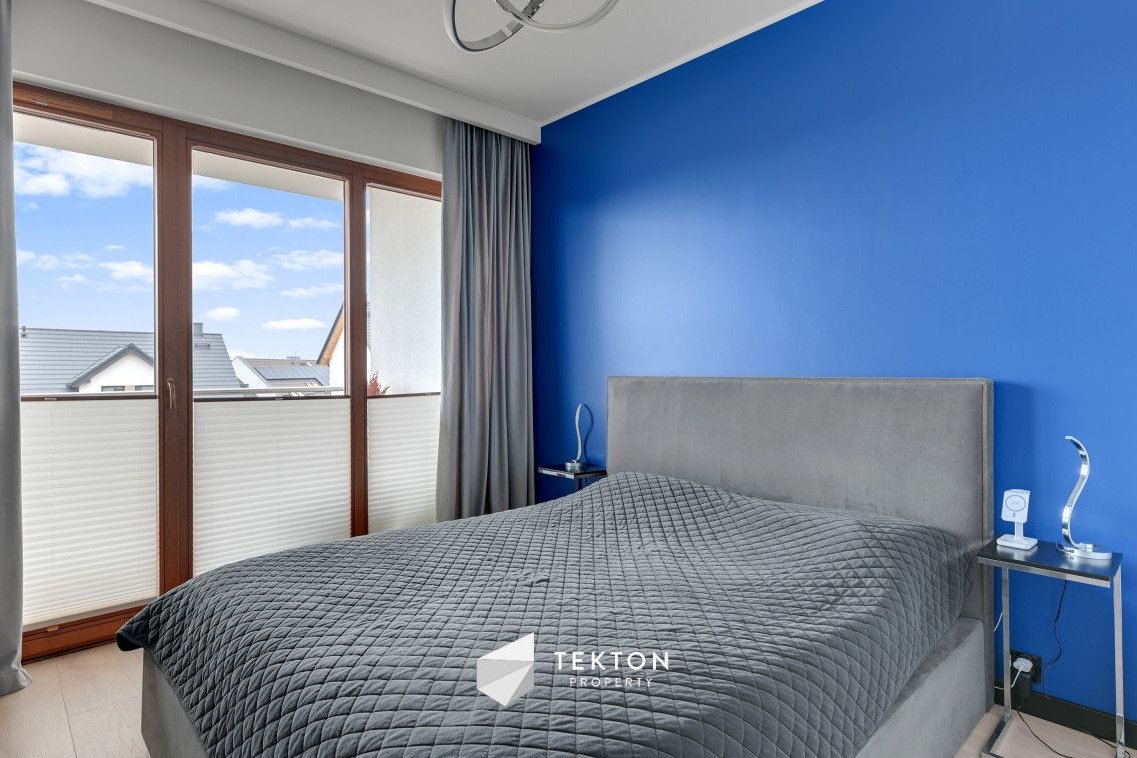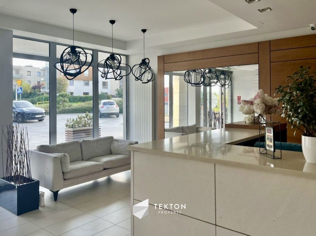 Elegancji apartamentowi dodaje finezyjnie dobrane oświetlenie. Włoskie i hiszpańskie oprawy świetlne podkreślają styl wnętrza. Natomiast duże przeszklenia prowadzą na balkon i otwierają salon na malowniczą panoramę zieleni i Trójmiejski Park Krajobrazowy. O optymalną temperaturę dba klimatyzacja.