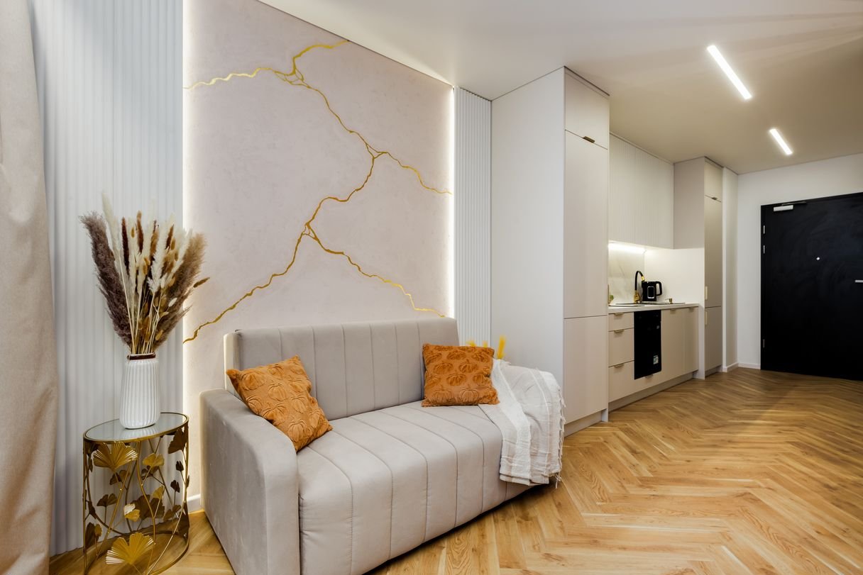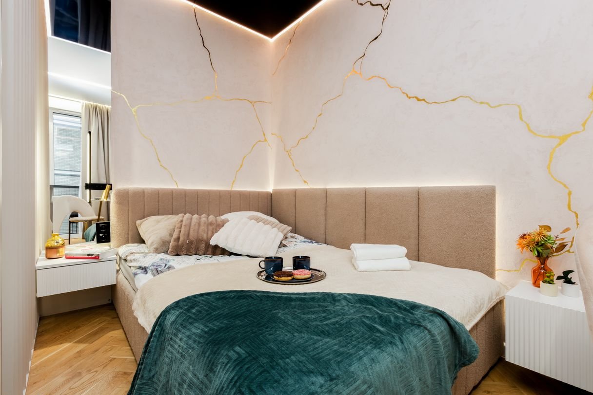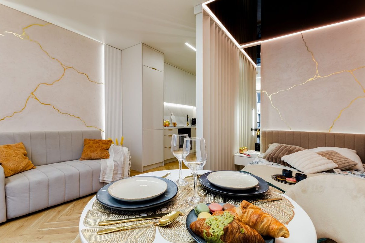 Apartament został zaprojektowany koncepcyjnie przez artystę z Włoch z naciskiem na estetykę, światło i detale. Niemal całe wyposażenie wykonano na zamówienie przez stolarza, co nadaje wnętrzu unikalny charakter.
