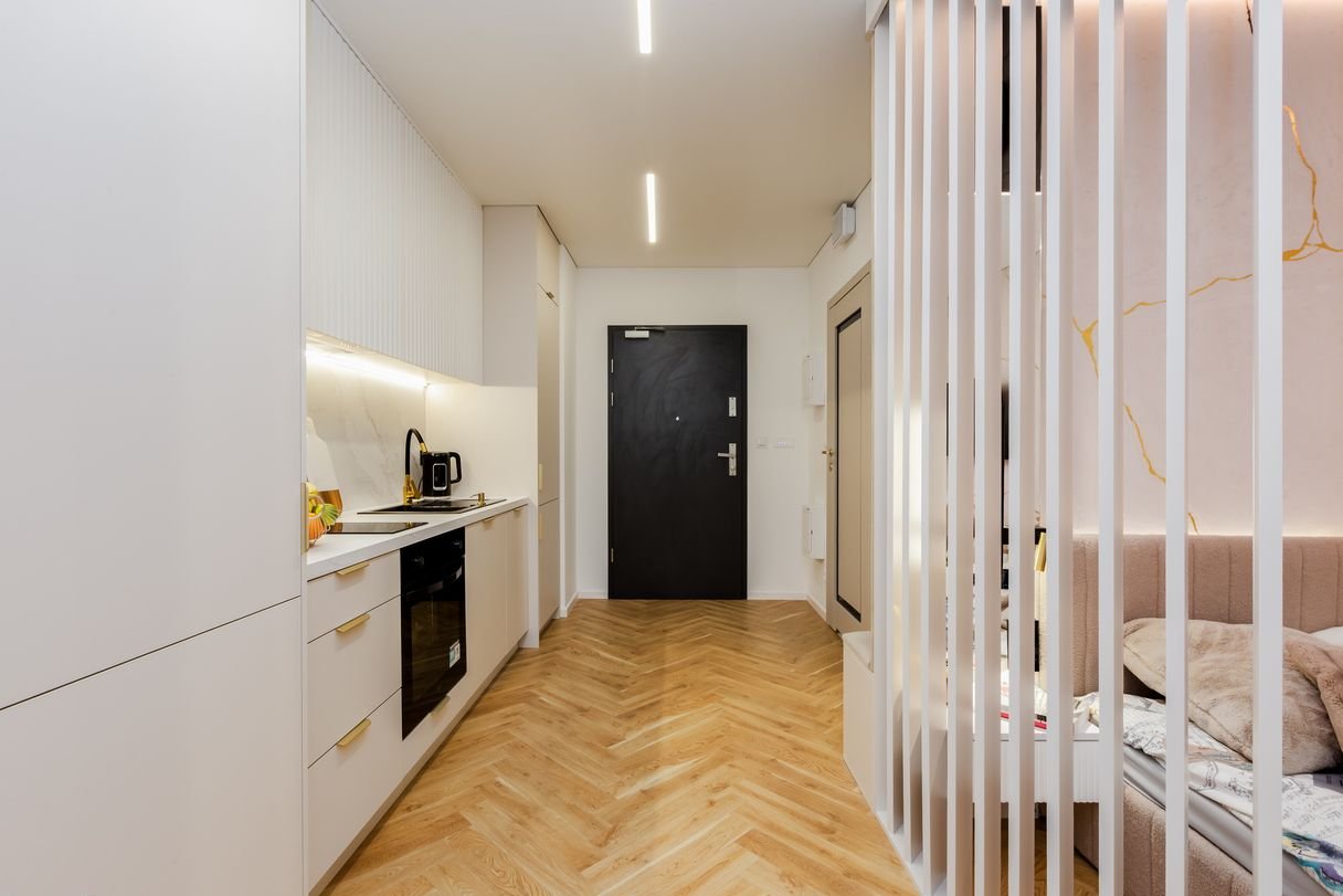 Apartament o powierzchni ok. 27 m² jest w pełni wykończony, wyposażony i obecnie wynajmowany, dzięki czemu nowy właściciel może od razu korzystać z nieruchomości lub kontynuować najem.