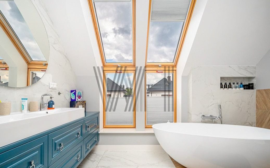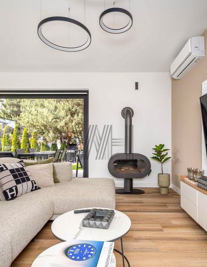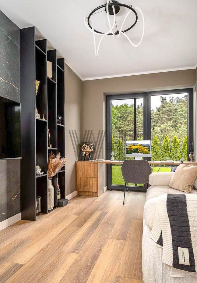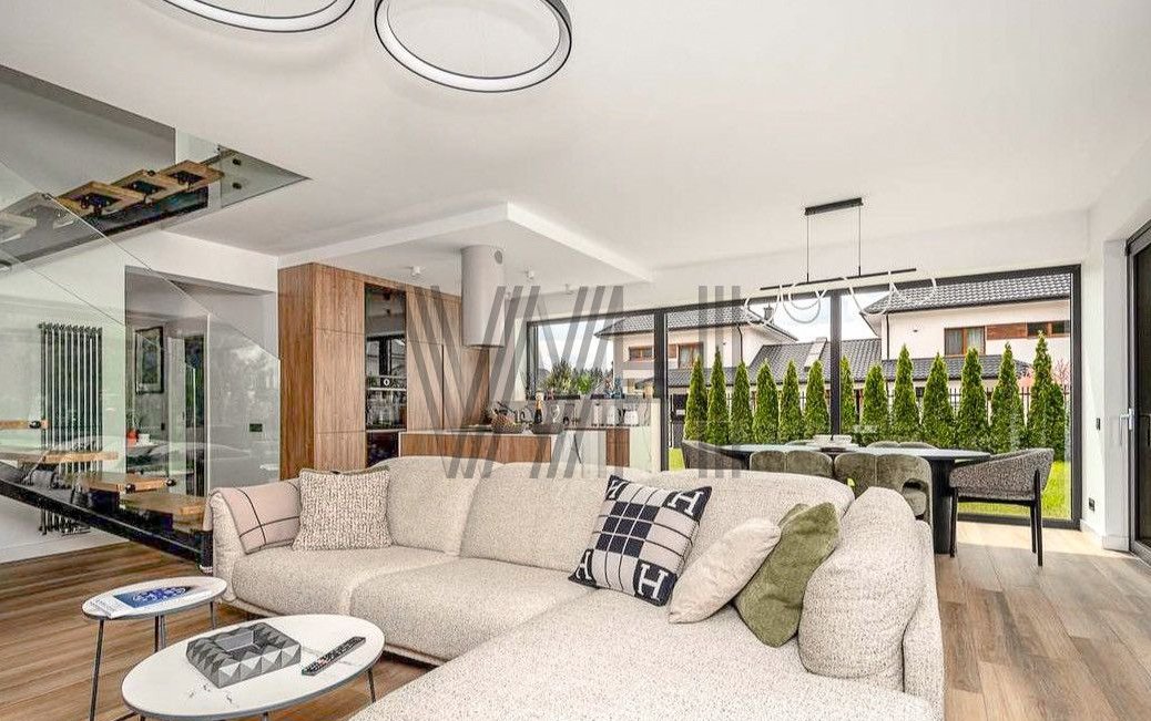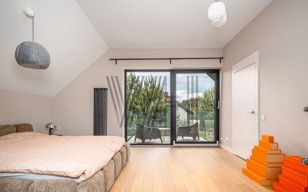 The house is situated right by the forest, in an exceptionally quiet and private neighborhood. The surrounding greenery ensures a sense of harmony and seclusion, while allowing you to reach the center of Konstancin within minutes and enjoy easy access to Warsaw.