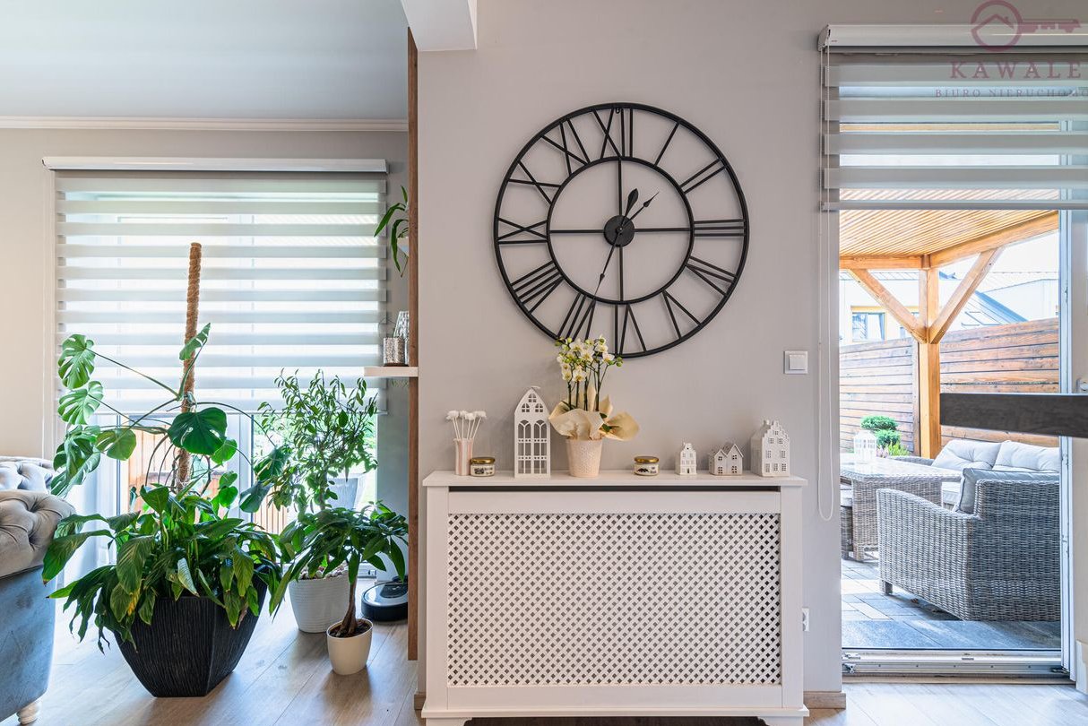 Łatwe do utrzymania w czystości eleganckie podłogi z paneli winylowych, w łazienkach gres szkliwiony. Zaawansowany system klimatyzacji marki Gree we wszystkich pomieszczeniach z możliwością ustawiania różnych trybów pracy i czasów. Oświetlenie LEDOWE w całym domu, nowoczesne lamele dekoracyjne, eleganckie zabudowy grzejników.