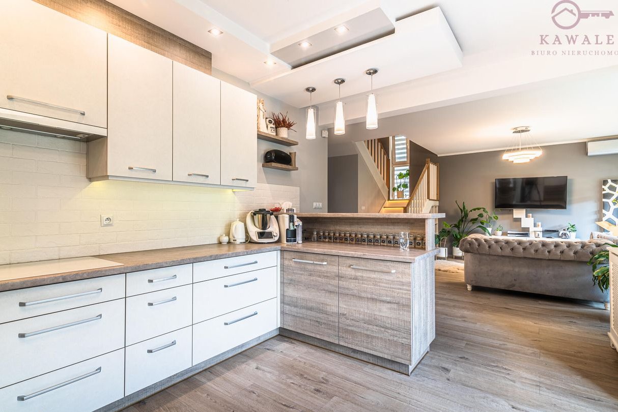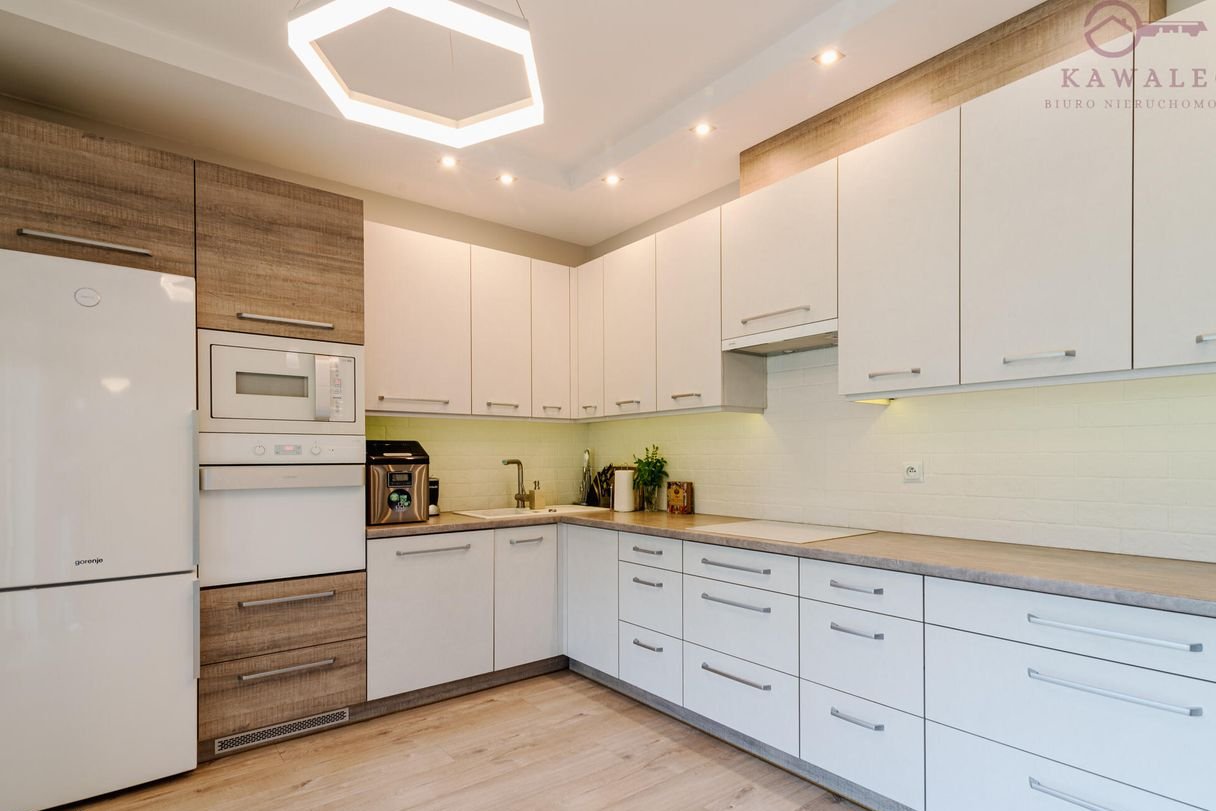 Przestronna kuchnia w pełni wyposażona w wysokiej klasy sprzęty: okap Gorenje, płyta indukcyjna 4-palnikowa, mikrofalówka w zabudowie, piekarnik, zmywarka Electrolux 60 cm, wolnostojąca lodówka, ekspres do kawy, kostkarka, czajnik elektryczny porcelanowy.