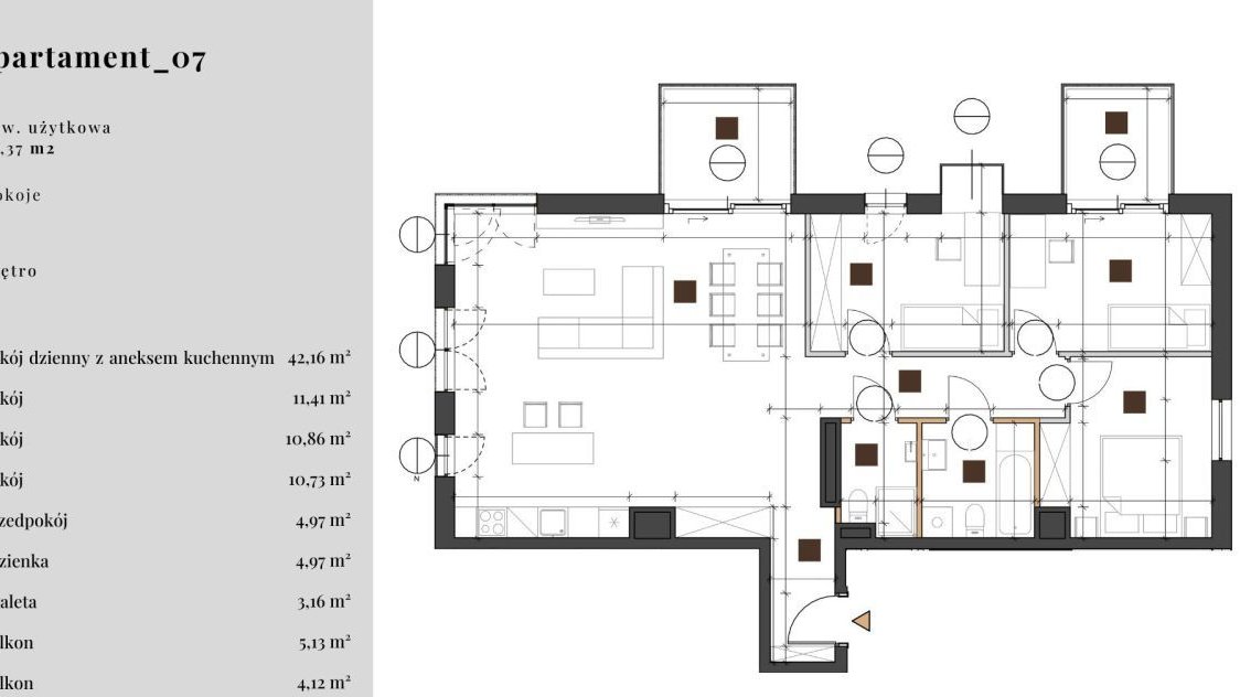 Każdy z jedenastu apartamentów charakteryzuje się dopracowanym układem funkcjonalnym, z wyraźnie oddzieloną przestrzenią dzienną i prywatną. Projektanci zadbali o to, aby każda strefa była maksymalnie komfortowa i ergonomiczna. Wysokość pomieszczeń, obfite naturalne doświetlenie oraz użycie ponadczasowych materiałów stanowią idealne tło do indywidualnej aranżacji wnętrz, z zachowaniem najwyższych standardów estetyki i elegancji.
