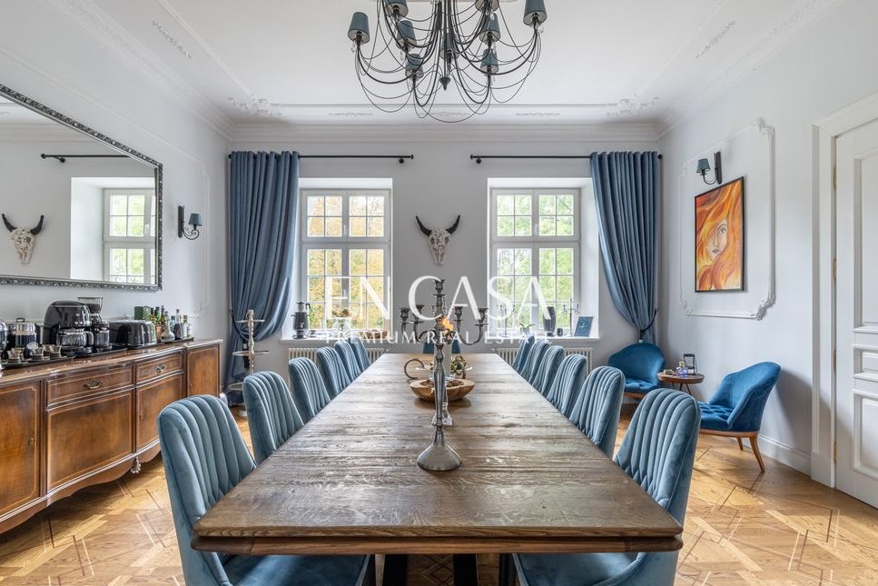 W tym wyjątkowym pałacu każdy krok to podróż w krainę niezapomnianych doznań. To nie tylko architektoniczne arcydzieło, lecz także oaza, gdzie historia splata się z nowoczesnością. Atmosfera tego miejsca przesycona jest magią, delikatną elegancją i subtelnym przepychem. Inspirujący orientalny styl architektoniczny sprawia, że każdy detal jawi się jako kunsztowna kompozycja, tworząc niepowtarzalny klimat tego wyjątkowego pałacu. Na terenie lądowisko dla helikoptera, domek gościnny, oraz hala mogąca służyć jako stajnia lub duży garaż.