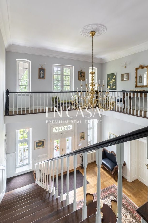 On the first floor there is a representative hall, fireplace lounge, piano lounge, living room, study, studio, gym, guest room, kitchen with dining room and many other rooms.