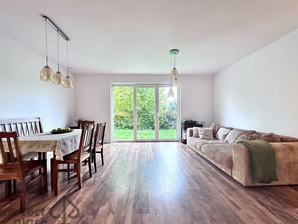 Na parterze kuchnia z meblami w zabudowie wyposażona w najpotrzebniejszy sprzęt AGD otwarta na salon, wydzielona jadalnia oraz przestronny salon z wyjściem na słoneczny ogród.
