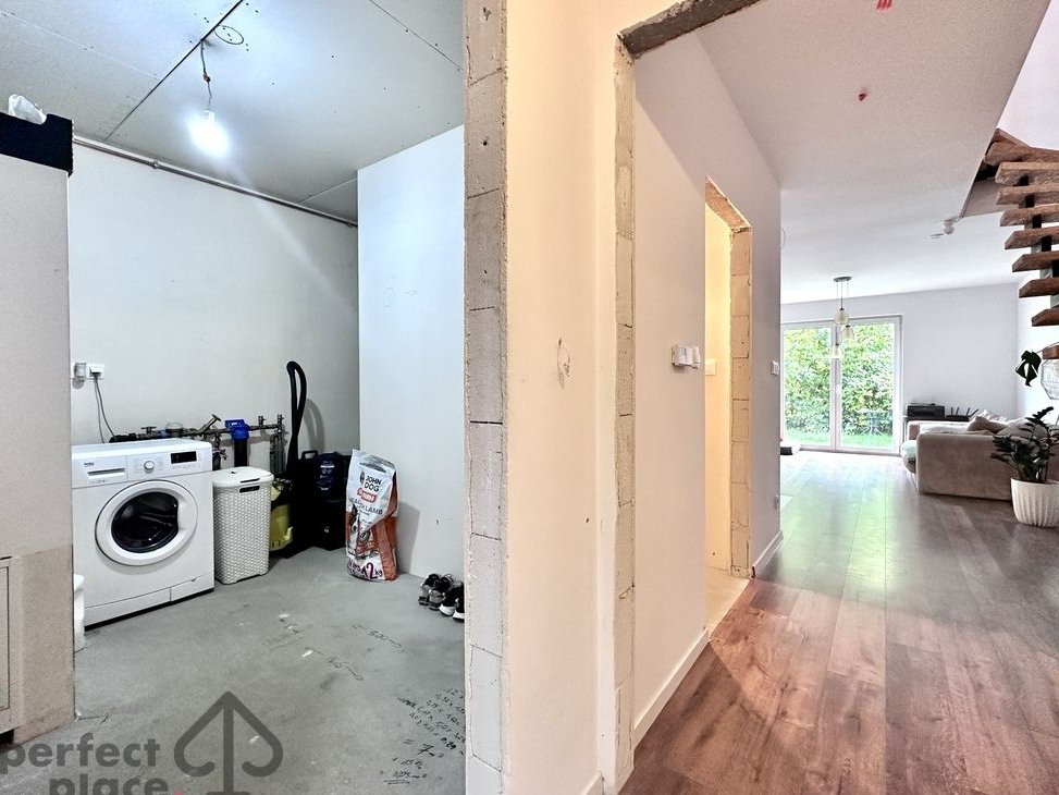 Dodatkowo na parterze znajduje się pomieszczenie z przeznaczeniem na łazienkę oraz pomieszczenie gospodarcze/ pralnia.