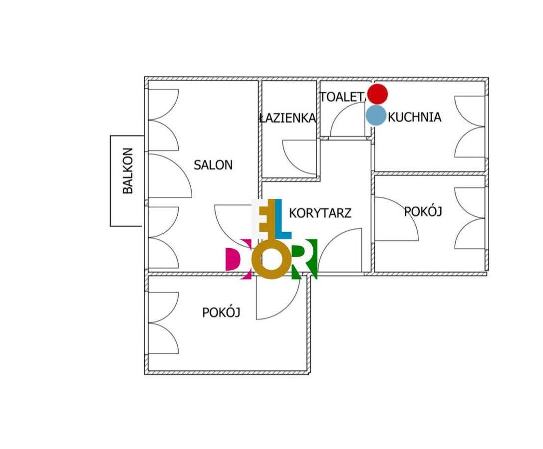 W skład lokalu wchodzą: salon, dwie sypialnie, kuchnia, łazienka, toaleta oraz korytarz.