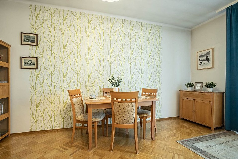 Mieści się w niej stół dzięki czemu posiłki można jeść w osobnej części jadalnianej.
