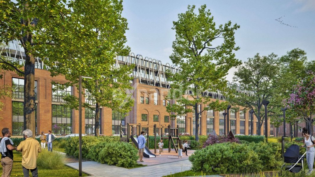 Nowoczesna architektura z industrialnym charakterem Łodzi. Rewitalizowany teren z 100-letnim parkiem (0,67 ha) na osiedlu
