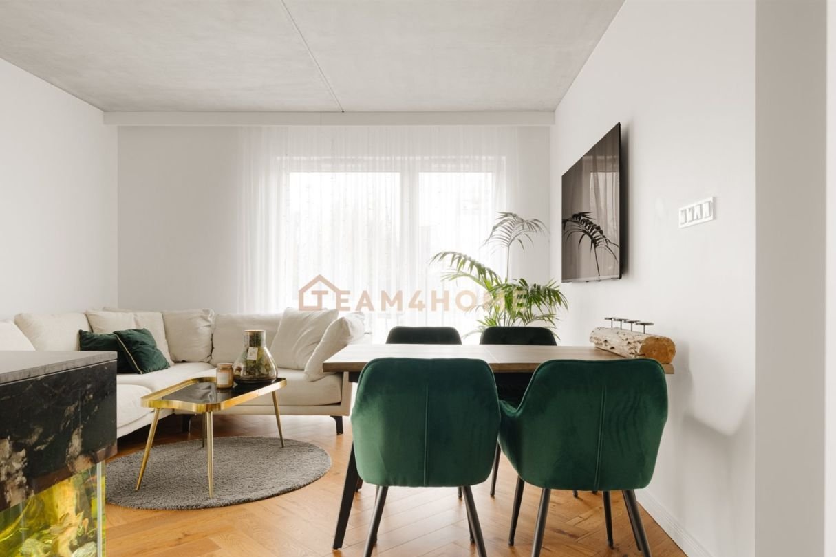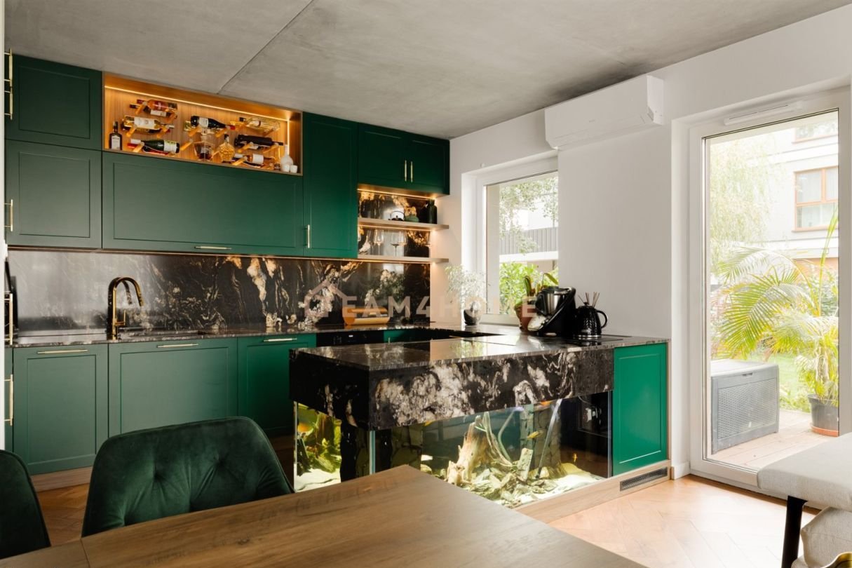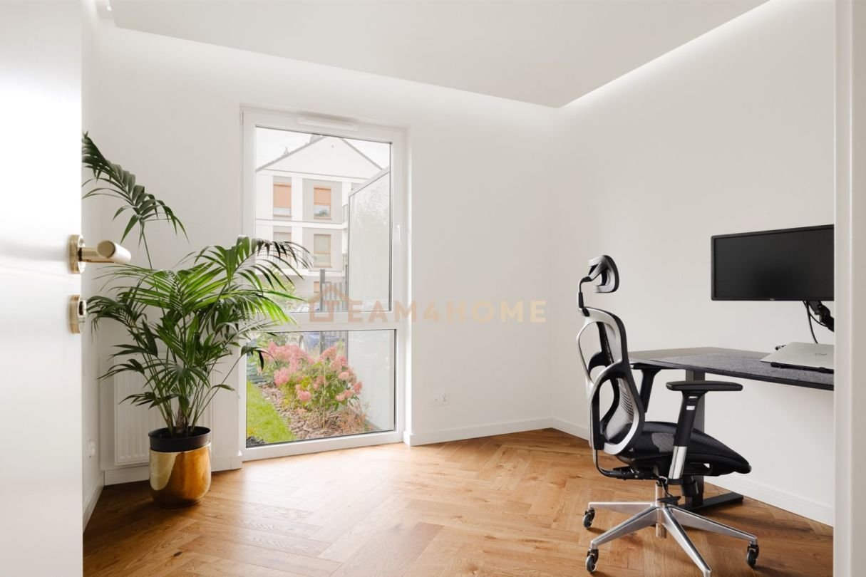 Mieszkanie stanowi luksusową przestrzeń do wypoczynku, o doskonałym układzie i pełnym słońca wnętrzu. Jednocześnie zachowuje namiastkę domu, którą uzupełnia 160-metrowy ogród – idealny do relaksu, uprawiania ogrodnictwa czy spędzania czasu przy grillu.