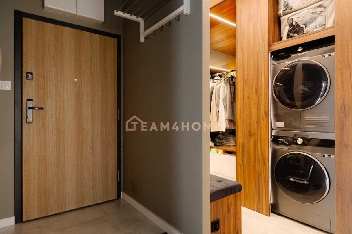 Ponadto mieszkanie wyróżnia się wysokiej klasy, bogatym wyposażeniem, które stanowi istotny atut oferty i jest wliczone w jej cenę. W jego skład wchodzą m.in.: