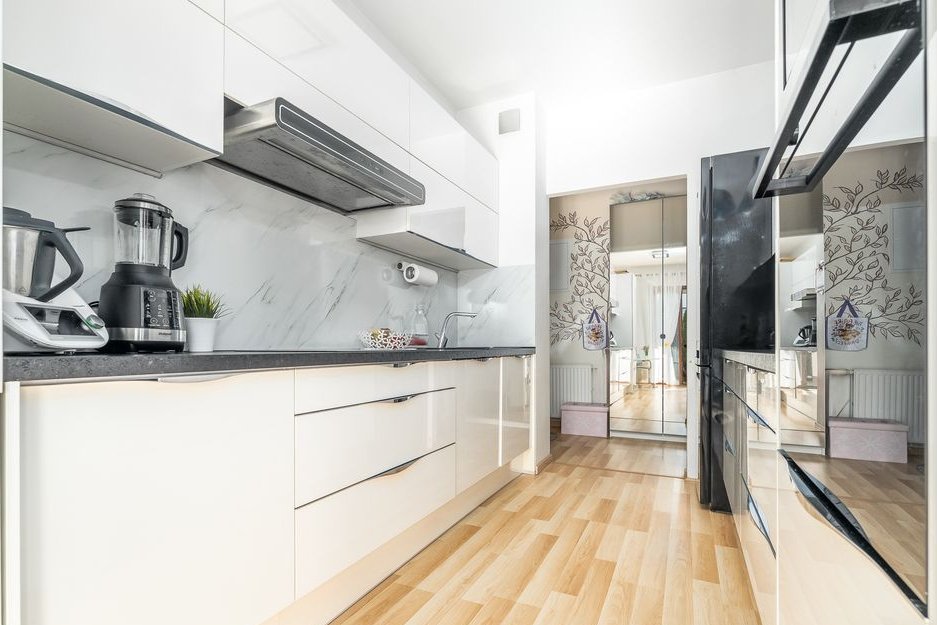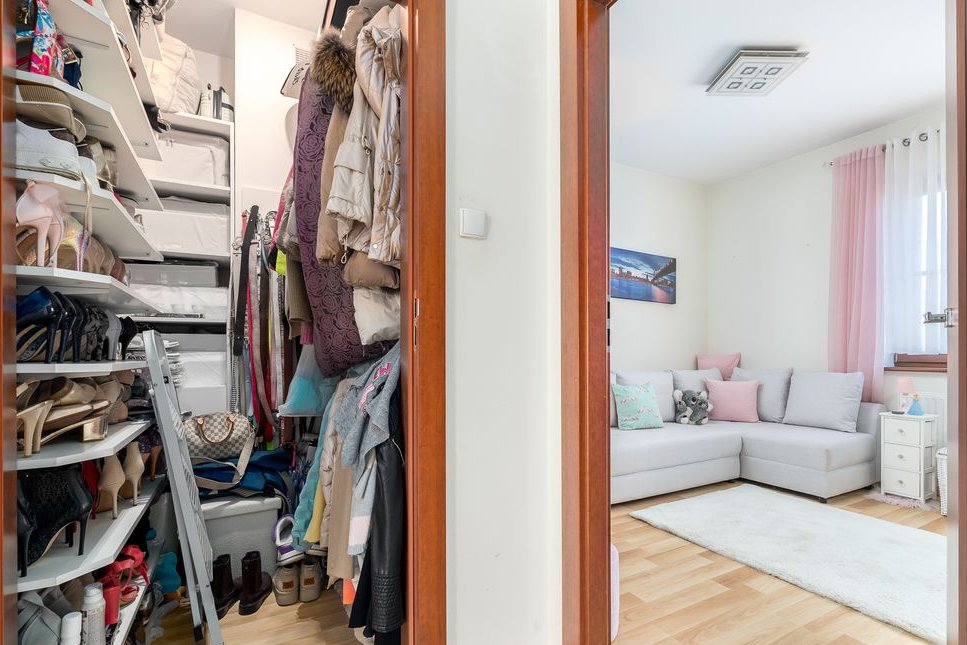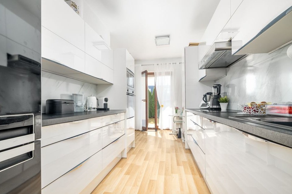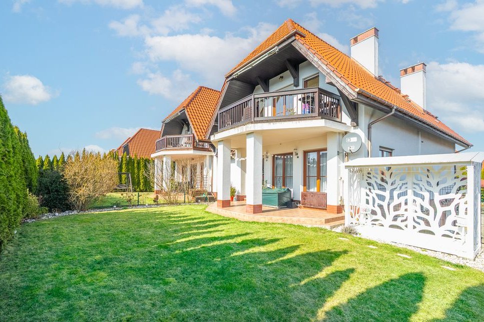 Dom jest sprzedawany w pełni umeblowany, dzięki czemu nowy właściciel może wprowadzić się praktycznie od razu. Kuchnia jest kompletnie wyposażona we wszystkie niezbędne sprzęty AGD, co znacząco podnosi komfort codziennego użytkowania.