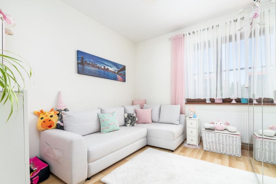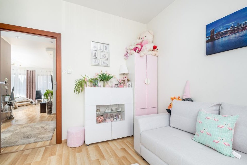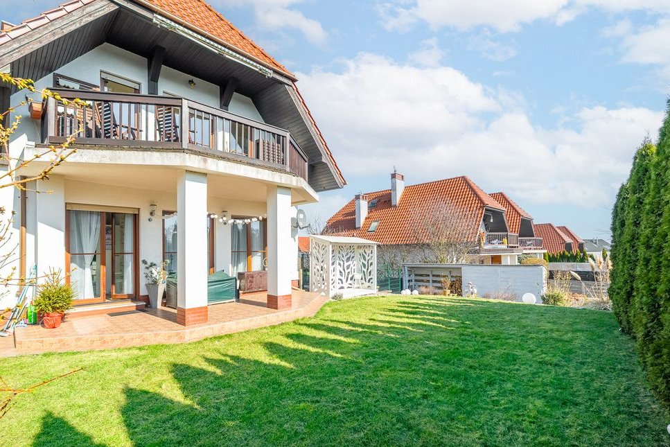 Prawdziwą perełką tej nieruchomości jest pięknie zagospodarowany ogródek o powierzchni około 150 m², który został zaprojektowany z myślą o relaksie i wypoczynku. Znajduje się tu część rekreacyjna idealna do spędzania czasu z rodziną i przyjaciółmi, a zadbany trawnik tworzy estetyczną i bardzo przyjemną przestrzeń do codziennego korzystania.