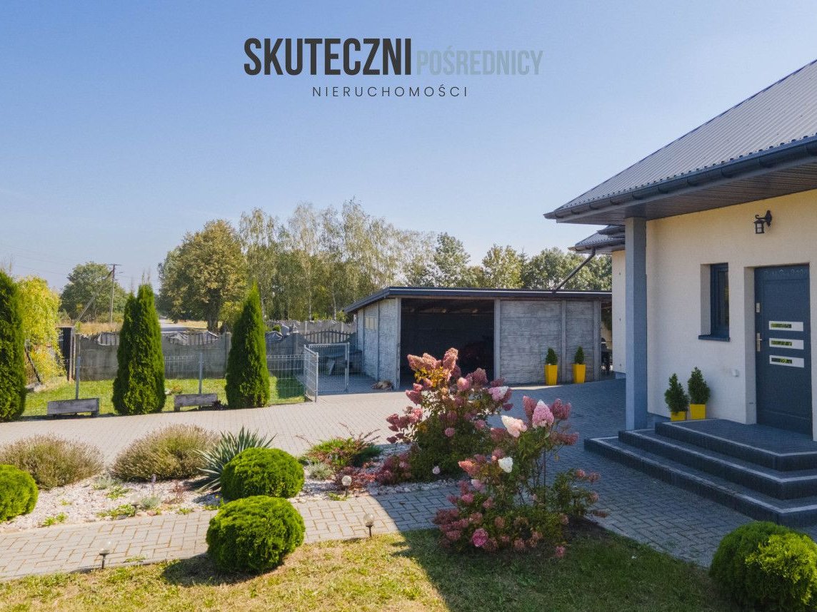 Na posesji znajduje się garaż jednostanowiskowy w bryle budynku oraz duży budynek gospodarczy o powierzchni zabudowy 55 m², który świetnie sprawdzi się jako drugi garaż, warsztat czy magazyn. Niewątpliwą ozdobą działki jest wiata grillowa porośnięta winoroślą, tworząca klimatyczne miejsce spotkań z rodziną i przyjaciółmi. Uroku dodaje również zadbany ogródek warzywny i kwiatowy oraz niewielki staw, który nadaje posesji wyjątkowego charakteru.