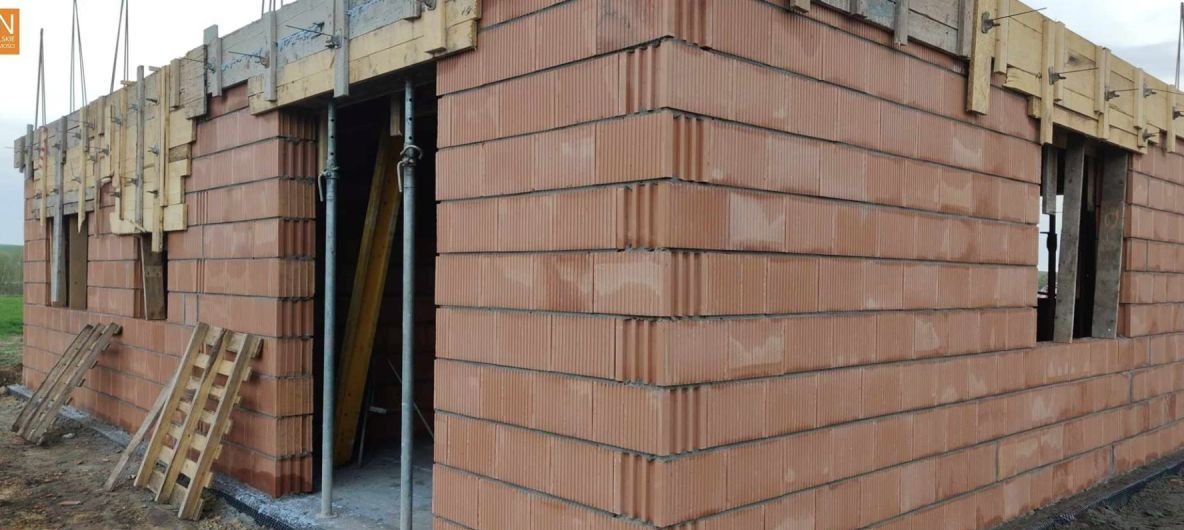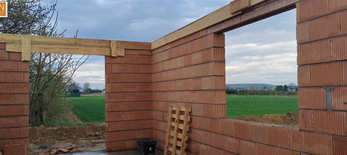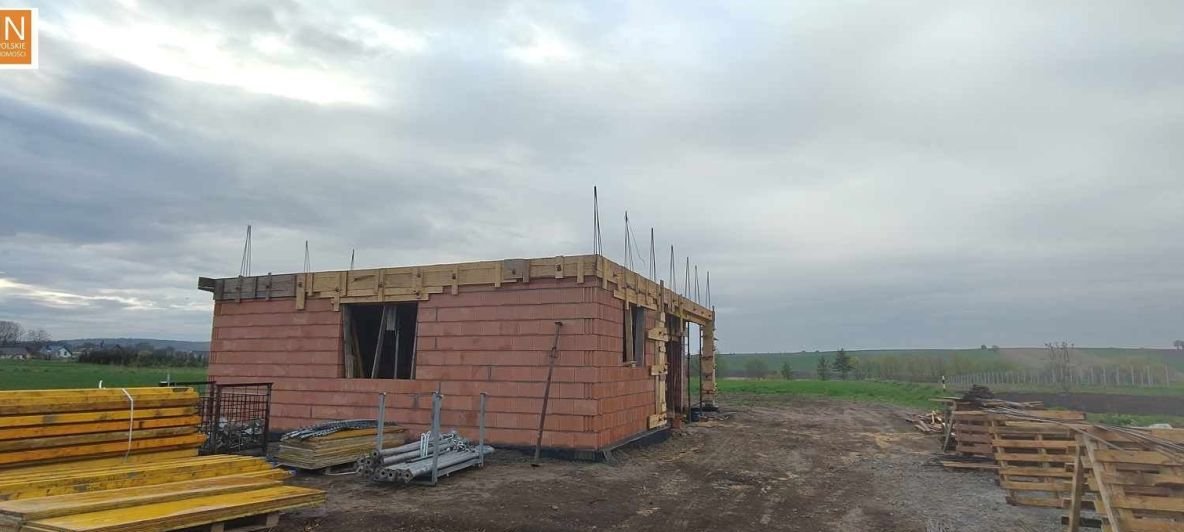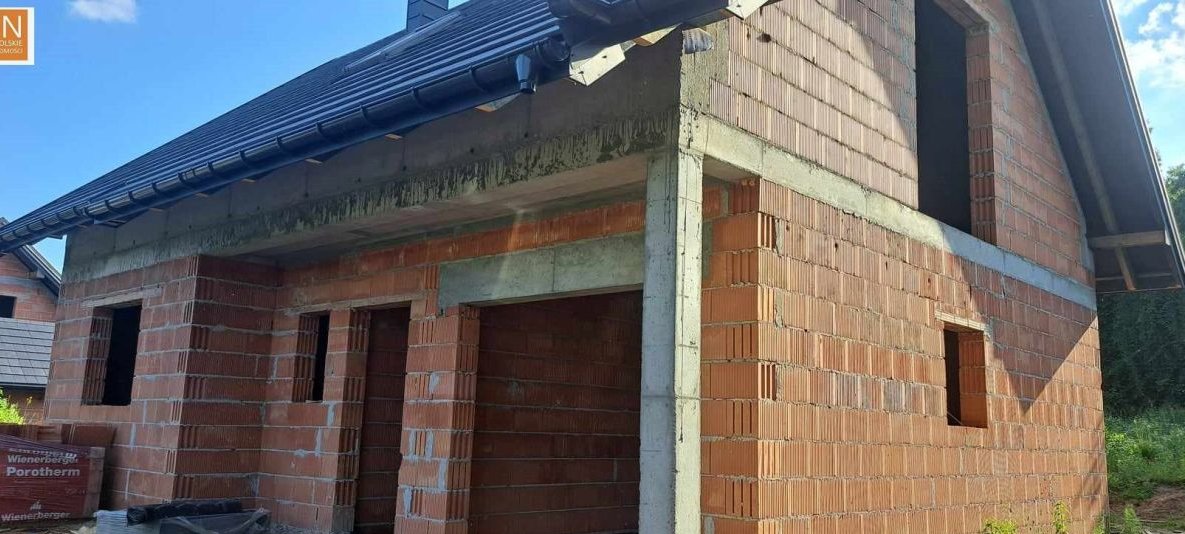Dom jest sprzedawany w stanie surowym otwartym, budowany w technologii tradycyjnej murowanej z ceramiki, kryty dachówką, wg projektu TOMIR. Garaż w bryle budynku. Dojazd droga asfaltowa gminna, ostatni odcinek droga utwardzona.