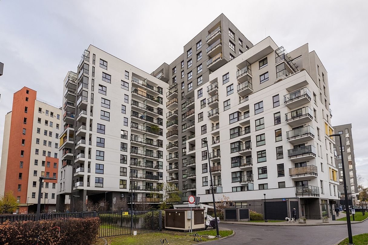 Mieszkanie znajduje się przy ul. Skierniewickiej 34A, na nowoczesnym osiedlu City Link z 2019 roku, w drugiej linii zabudowy, co zapewnia ciszę i prywatność mimo centralnego położenia.