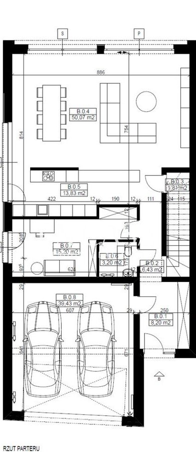 W budynku mieści się garaż dwustanowiskowy, a na podjeździe można zaparkować dodatkowe samochody.