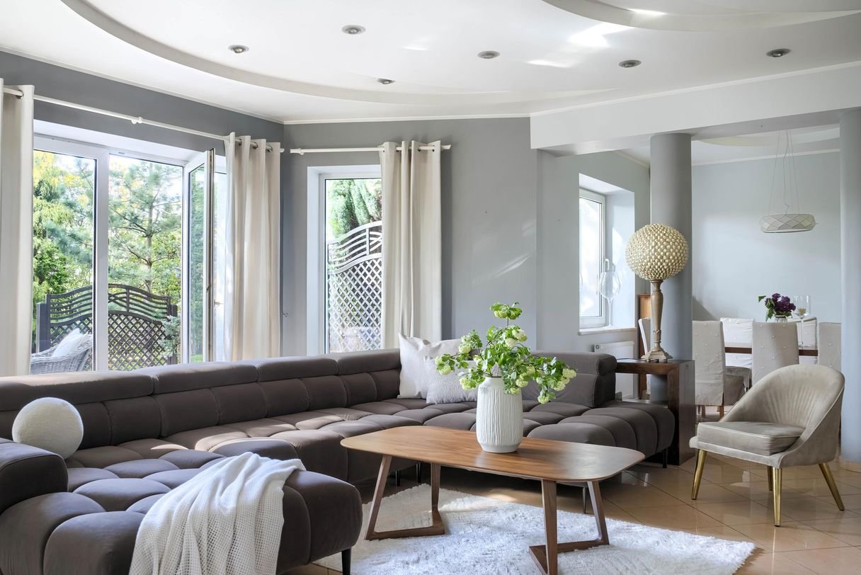 • salon połączony z jadalnią i wyjściem na taras i do ogrodu