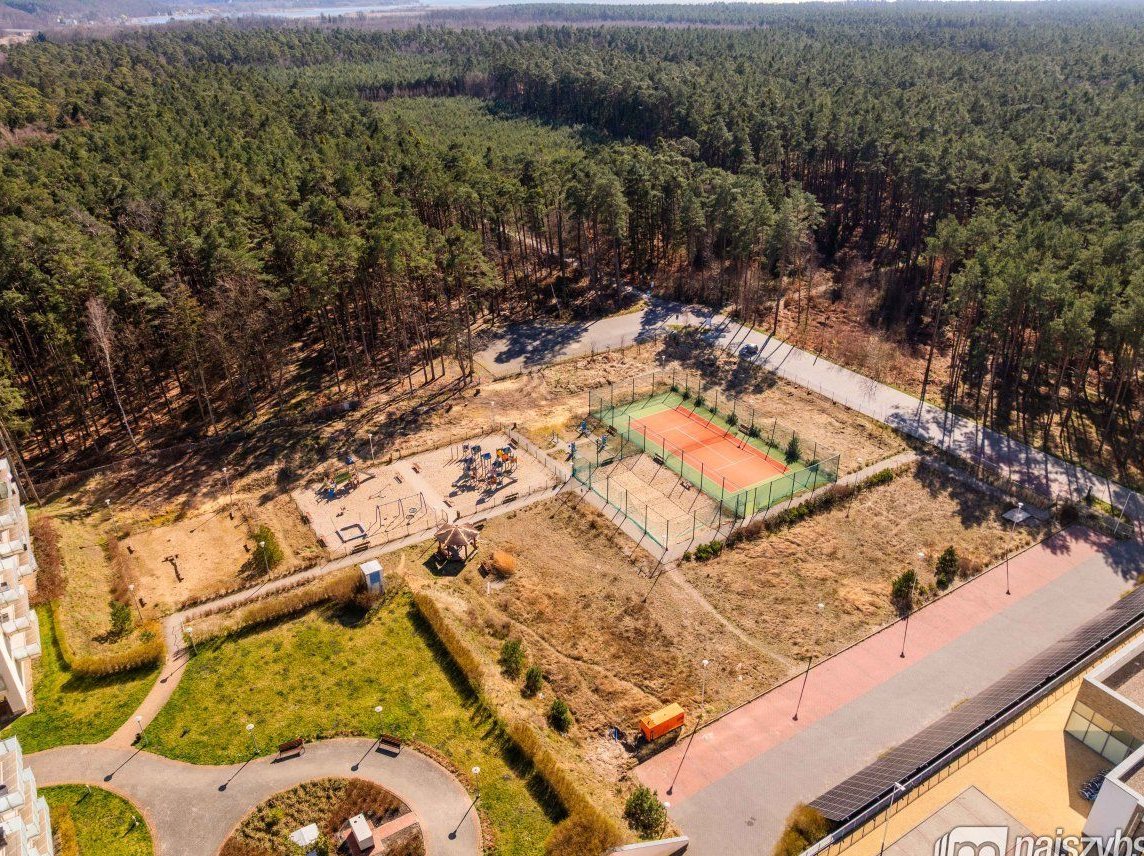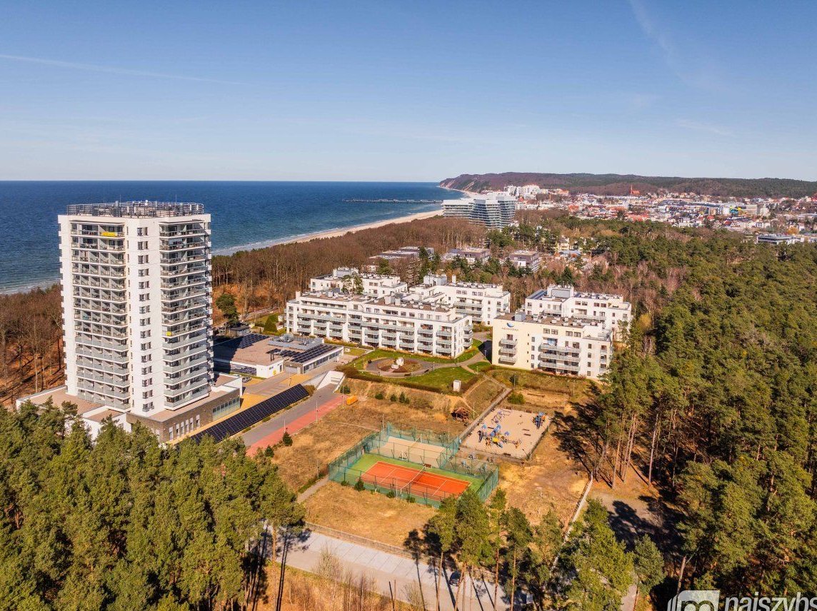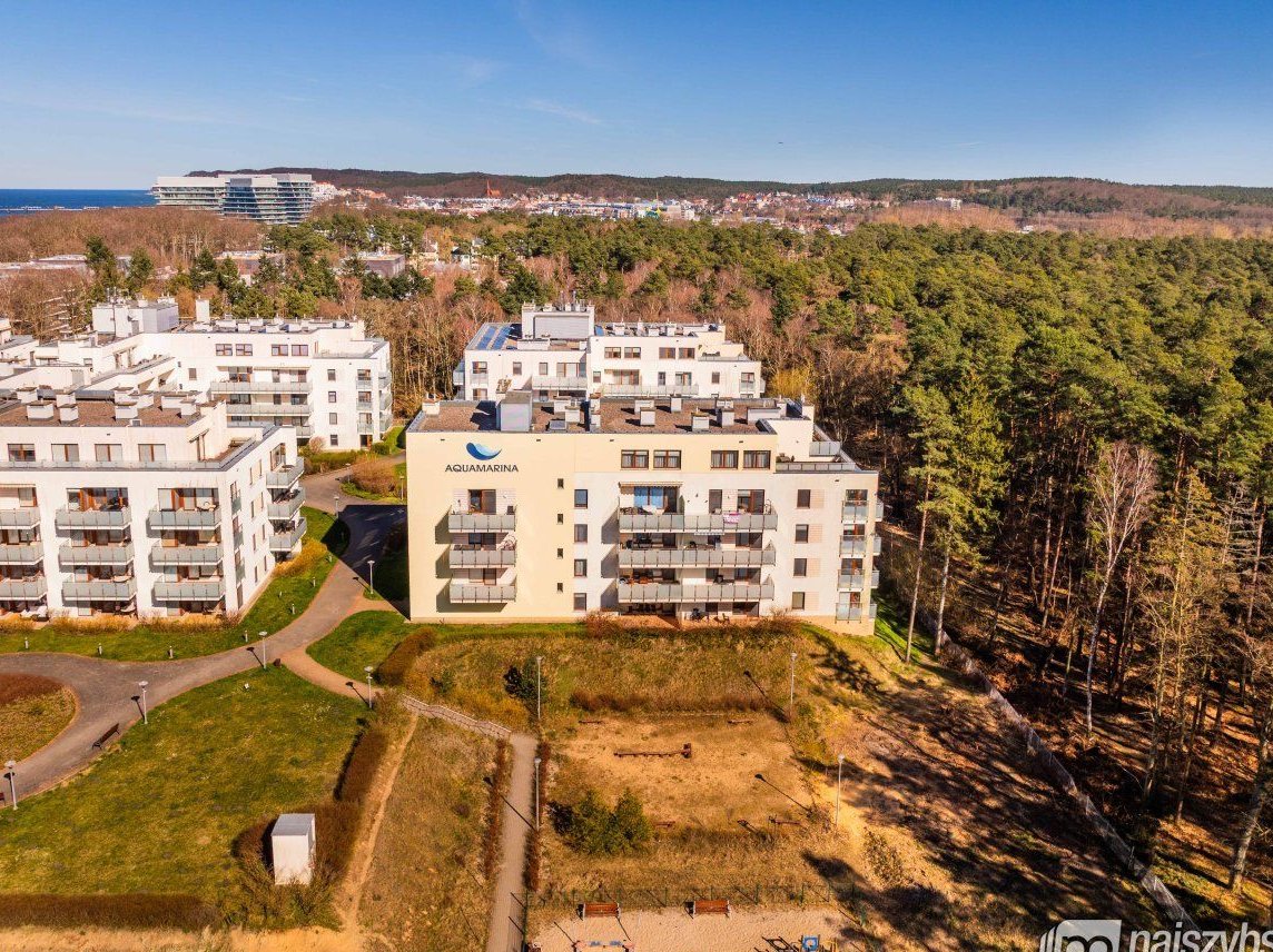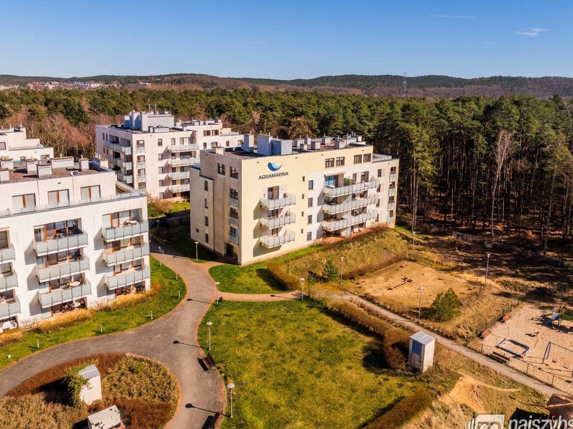 Kompleks Aquamarina, położony w spokojnej okolicy tuż przy lesie, oferuje bezpośredni dostęp do szerokiej, piaszczystej plaży - wystarczy przejść przez malowniczą wydmę.