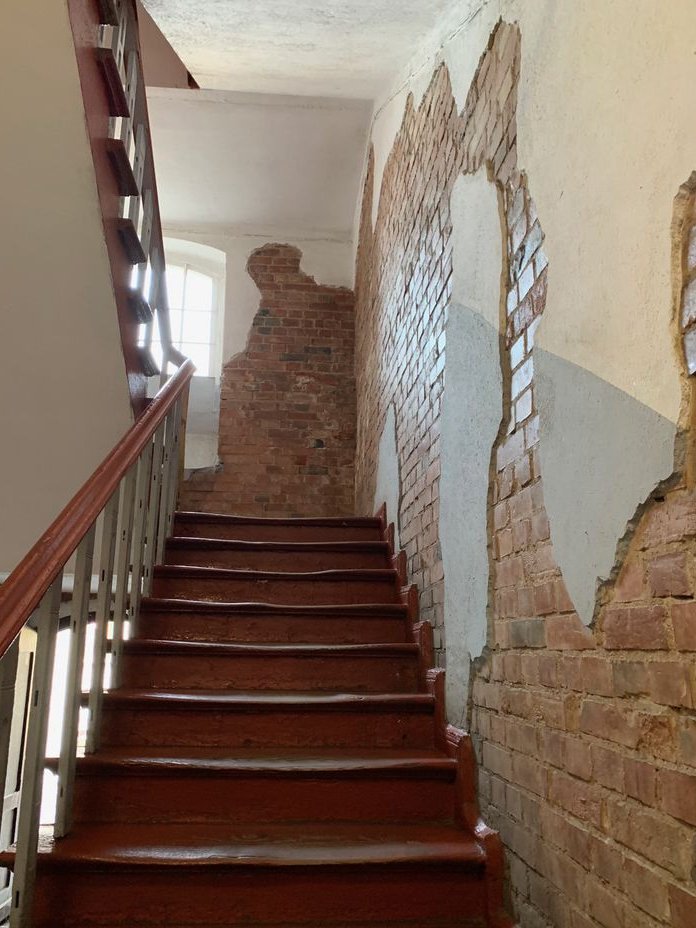 klatka schodowa wewnętrzna – w konstrukcji murowanej, schody drewniane